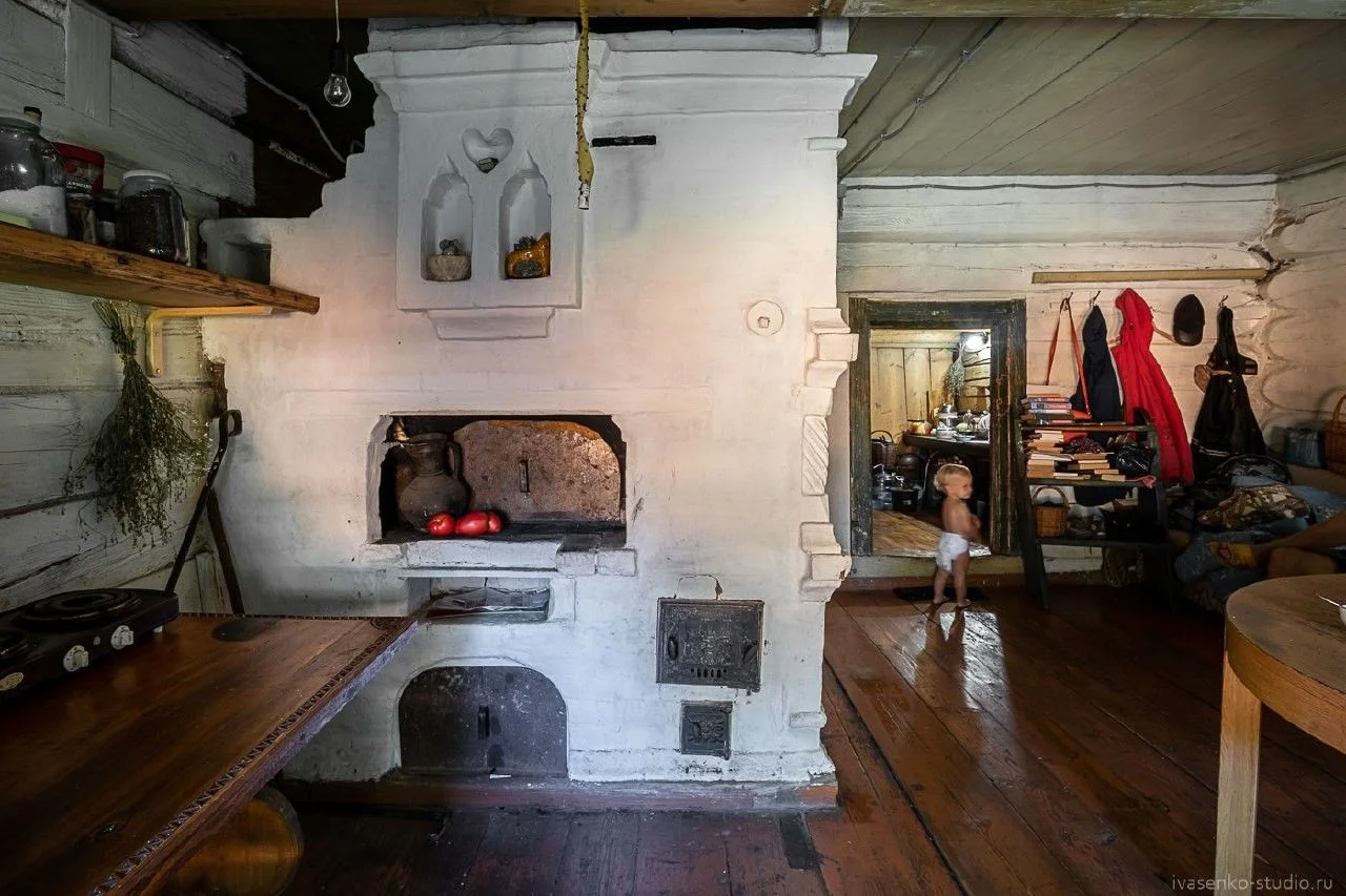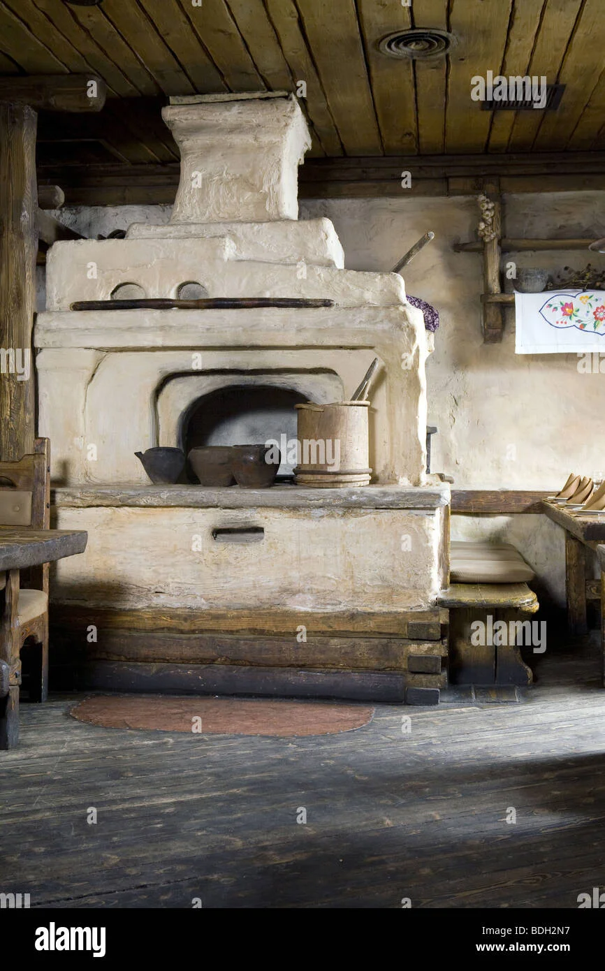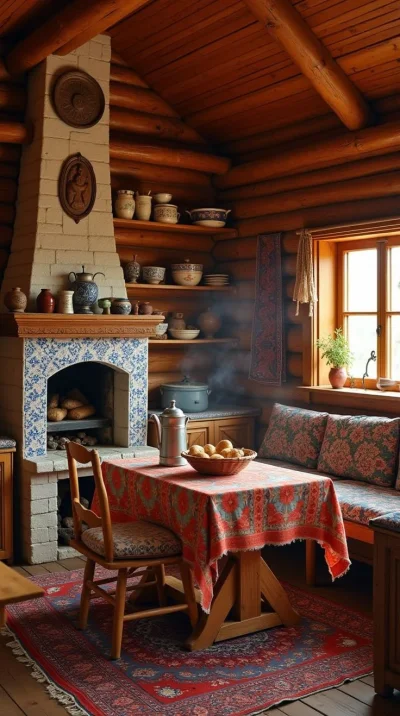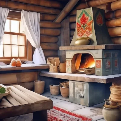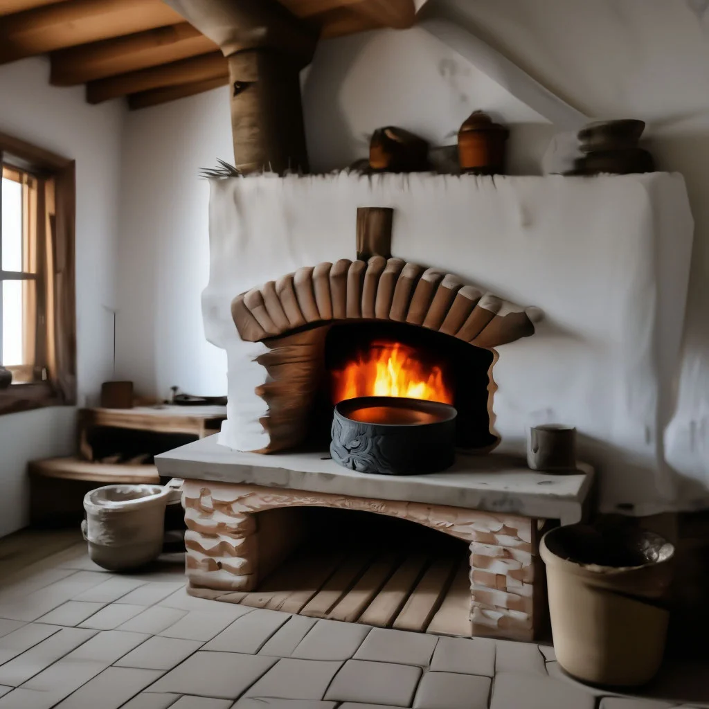 Смотрите, как деревенская печь излучает тепло, словно зовет прижаться ближе и согреться в ее объятиях. Ее кирпичные стены хранят тайны многих зимних вечеров, а дымоход тянется вверх, обещая уют и комфорт. Каждая трещина в глине рассказывает свою историю о деревенской жизни.