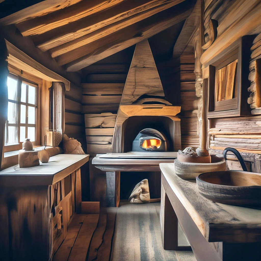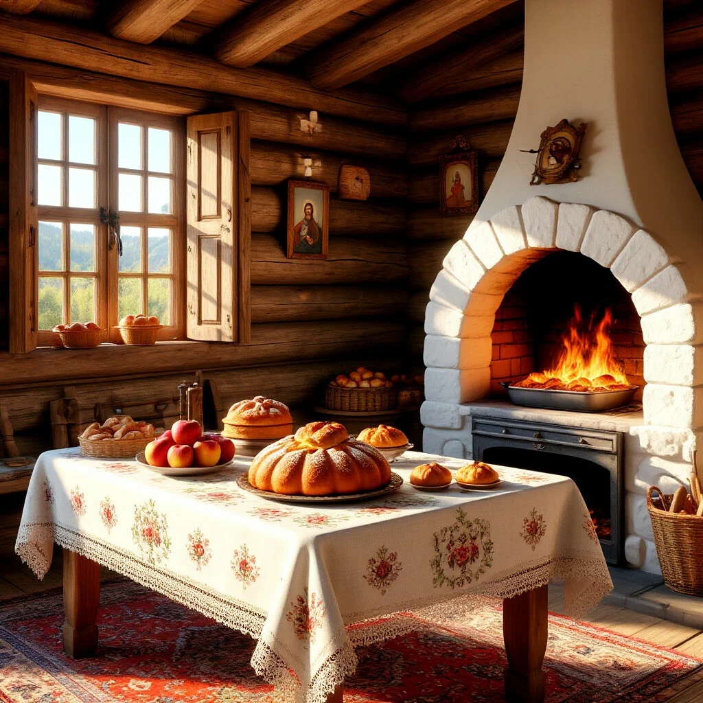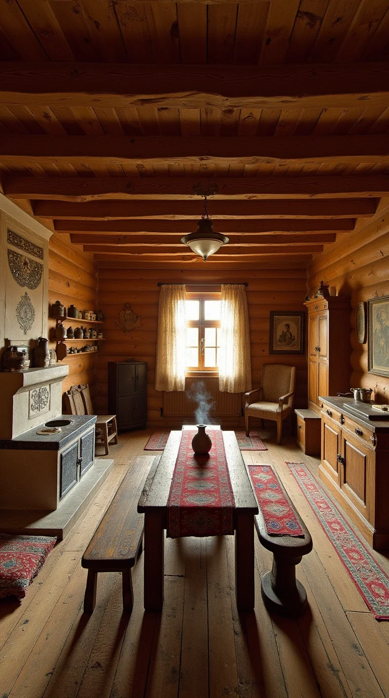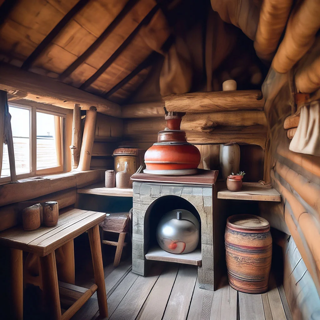 Смотрите, как деревенская печь излучает тепло, словно зовет прижаться ближе и согреться в ее объятиях. Ее кирпичные стены хранят тайны многих зимних вечеров, а дымоход тянется вверх, обещая уют и комфорт. Каждая трещина в глине рассказывает свою историю о деревенской жизни.