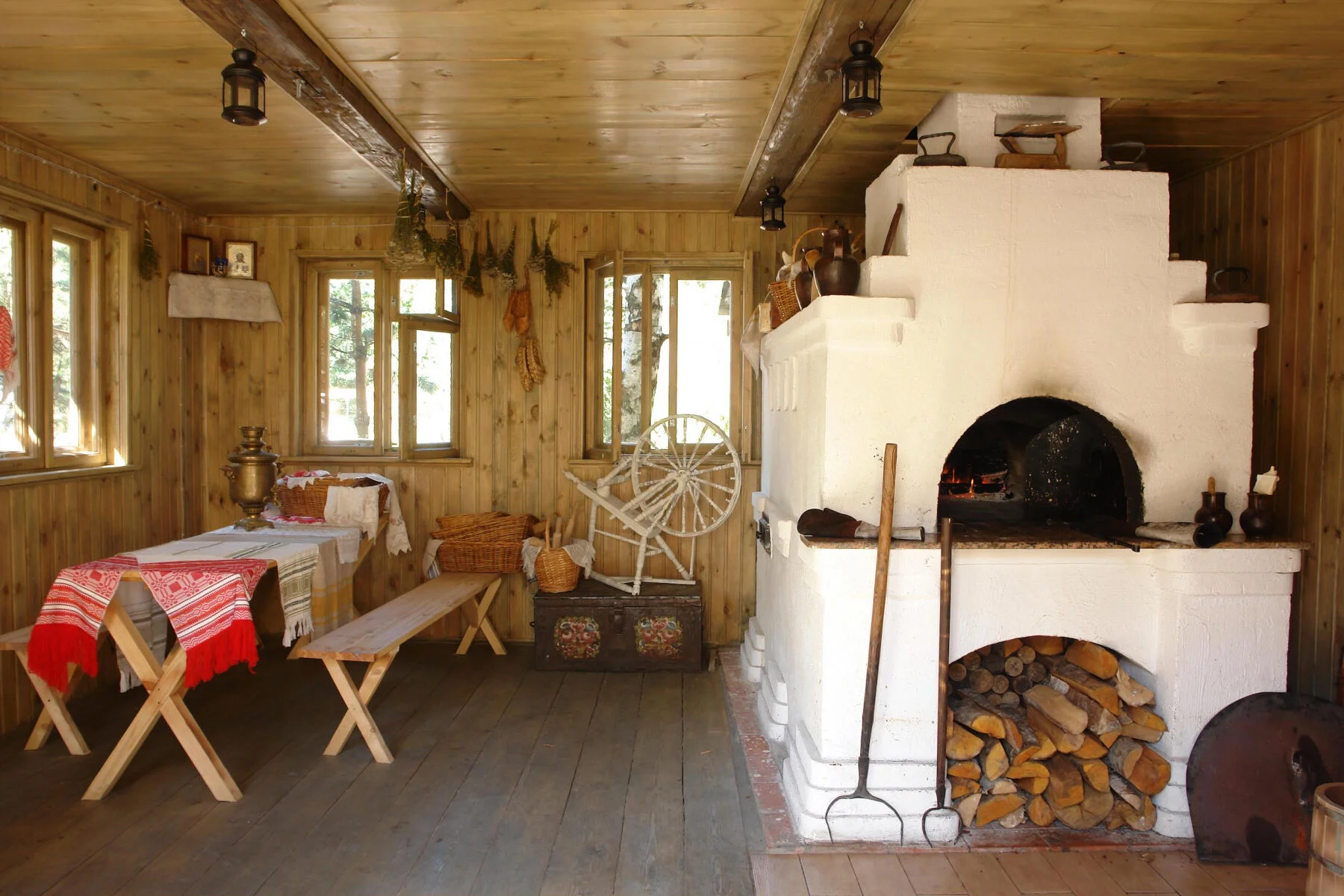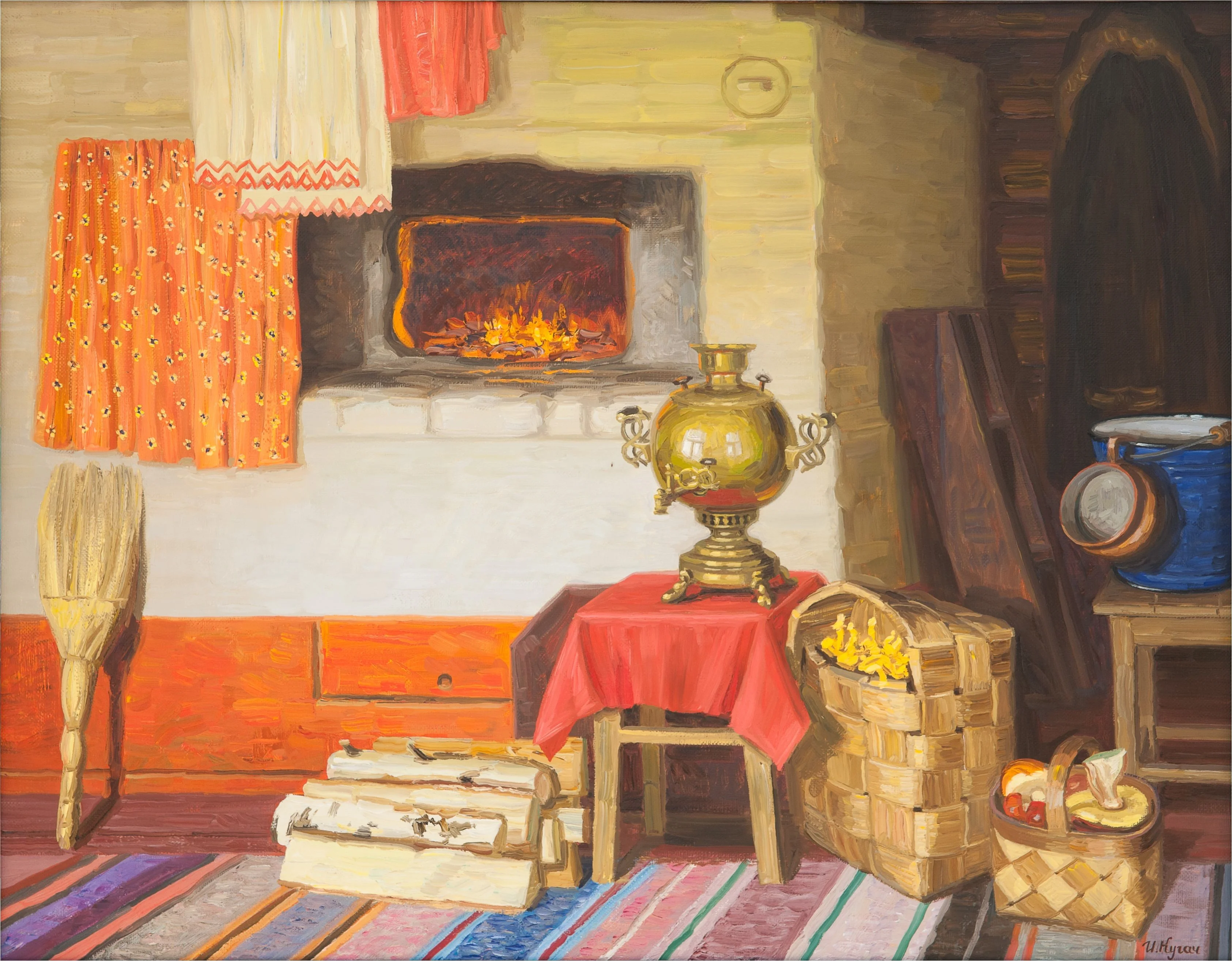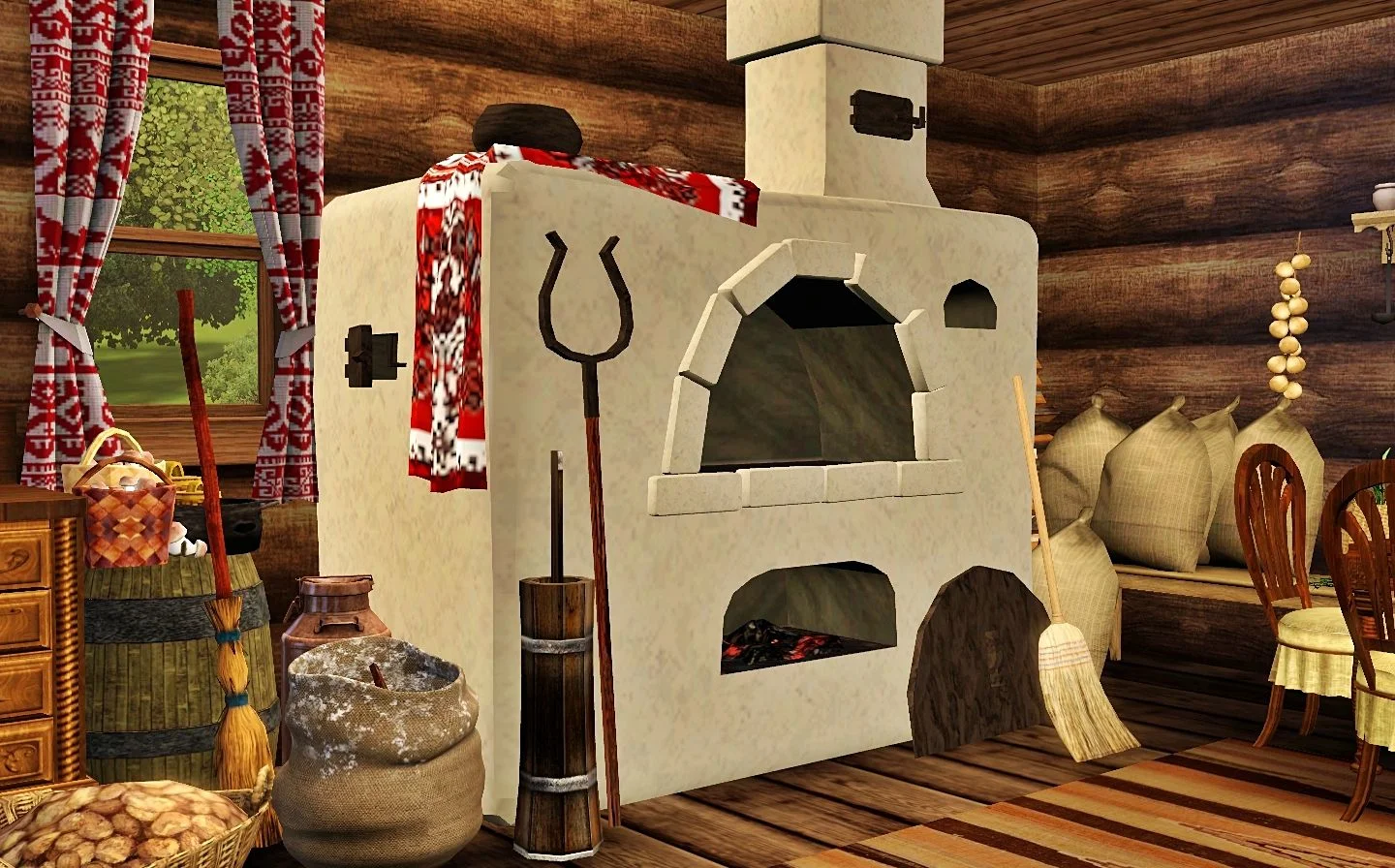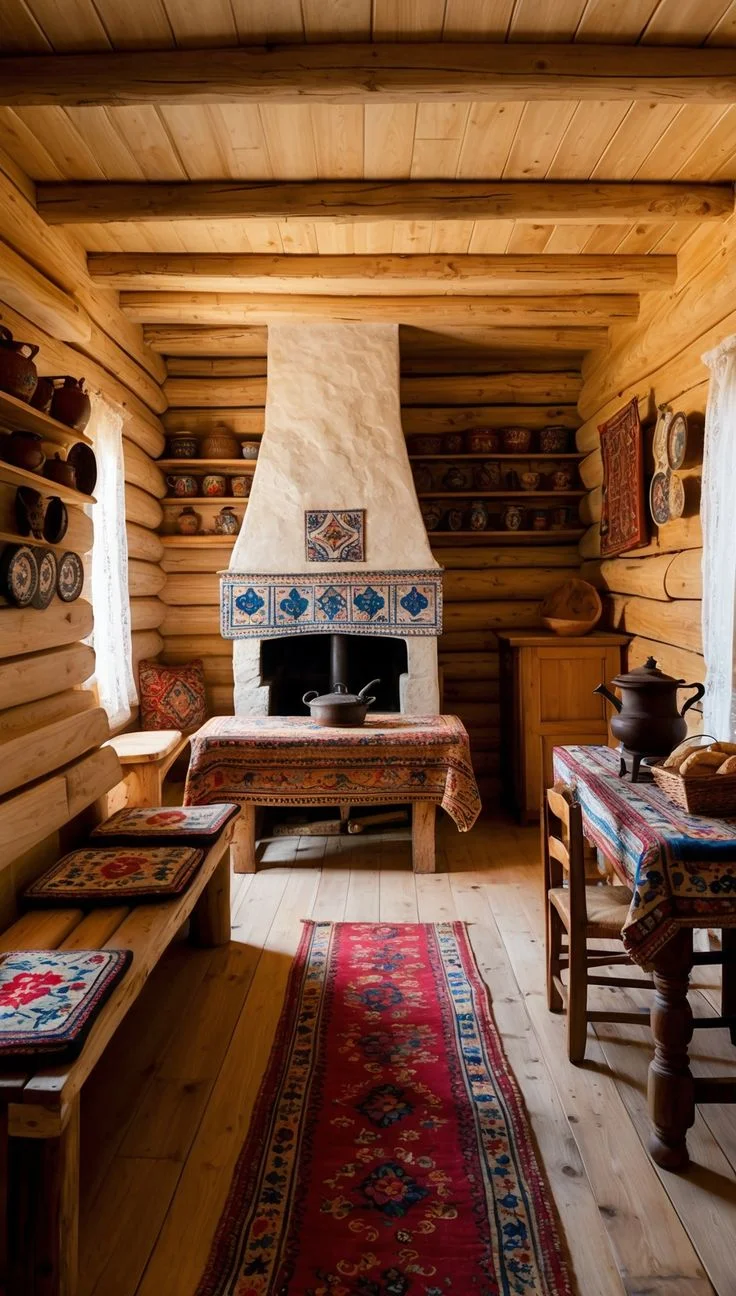 Смотрите, как деревенская печь излучает тепло, словно зовет прижаться ближе и согреться в ее объятиях. Ее кирпичные стены хранят тайны многих зимних вечеров, а дымоход тянется вверх, обещая уют и комфорт. Каждая трещина в глине рассказывает свою историю о деревенской жизни.