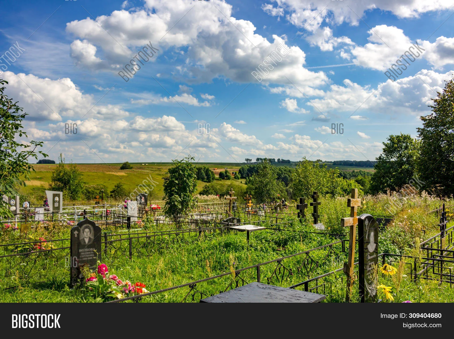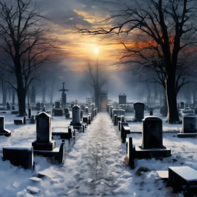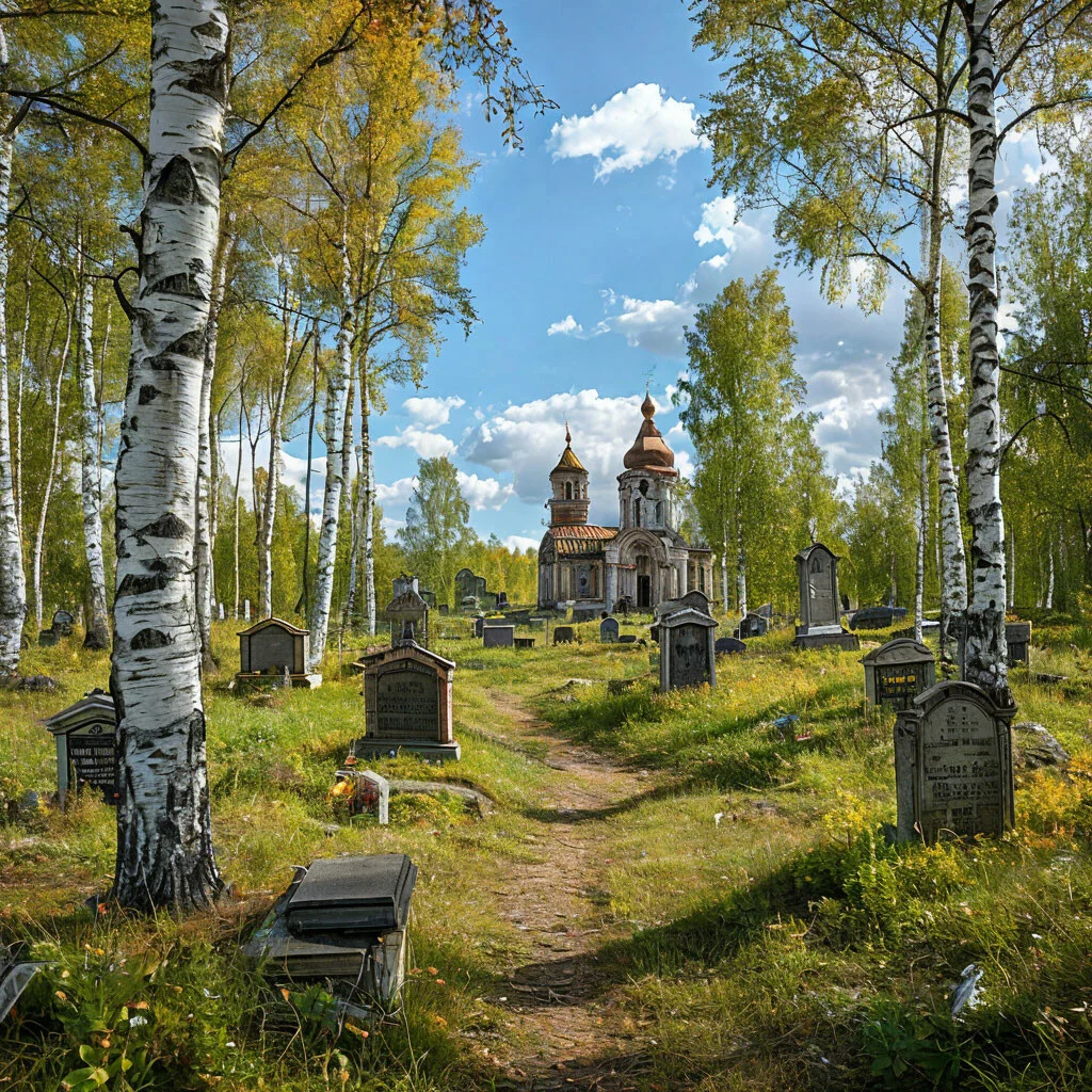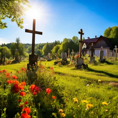 Кладбище в деревне вызывает особое чувство спокойствия среди зеленых холмов и вековых деревьев с пожелтевшими фотографиями на надгробиях. Раннее утро, когда туман рассеивается, а лучи солнца освещают потрескавшиеся плиты с именами ушедших жителей. Каждый камень хранит свою историю о жизни в тихом уголке природы.