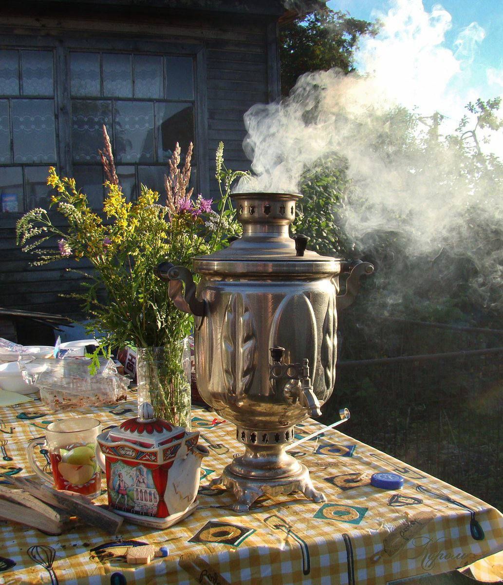 В этих фото деревенских самоваров чувствуется особая атмосфера ушедшей эпохи, когда каждая семья собиралась за чаем у большого медного чудо-агрегата. Именно такие старинные экземпляры хранят память о том времени, когда самовар был центром семейного уюта и важной частью деревенского быта. Вот уж где видна вся прелесть русского традиционного образа жизни!