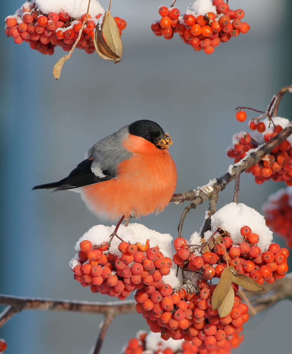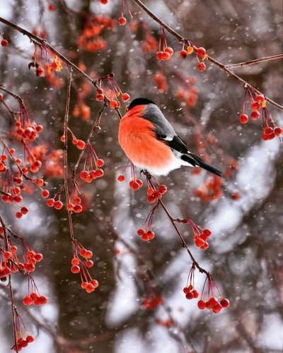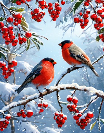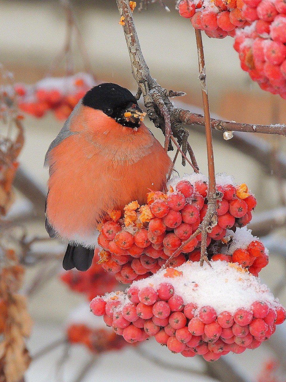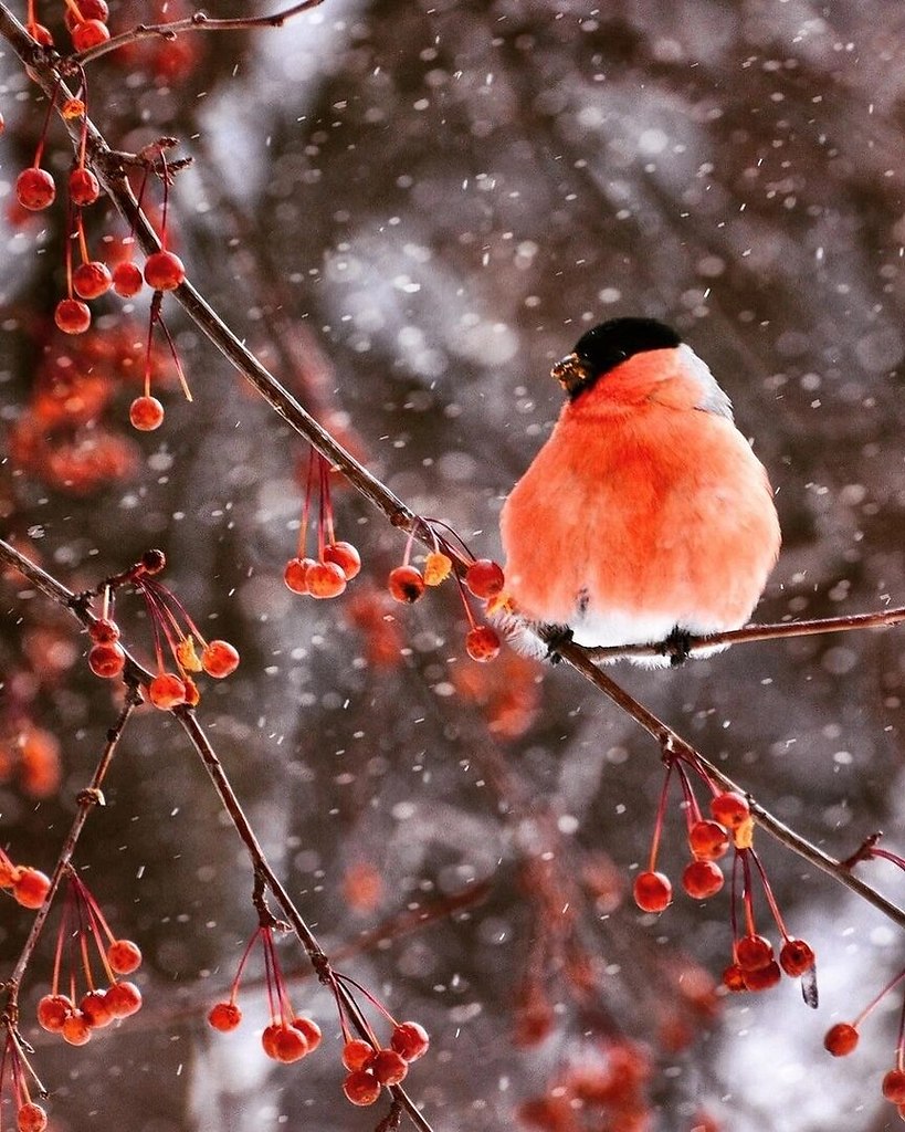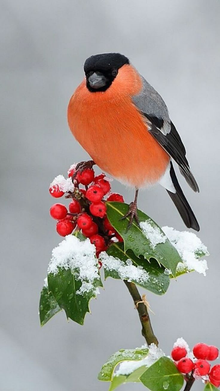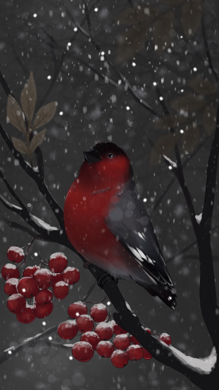 Зимой на заснеженных ветках часто можно увидеть ярких снегирей, которые с удовольствием клюют спелые ягоды рябины. Эти птицы создают неповторимую атмосферу зимнего леса, и вертикальные обои с таким сюжетом идеально подойдут для смартфона. Посмотрите, как красиво сочетаются красные ягоды и пестрое оперение птиц на белом снегу.