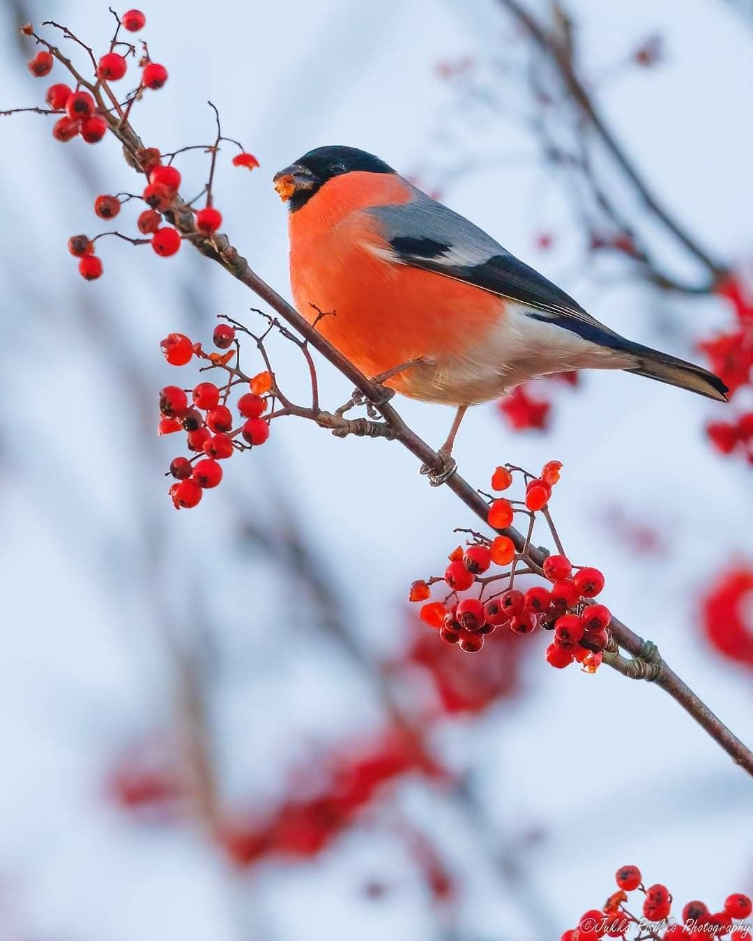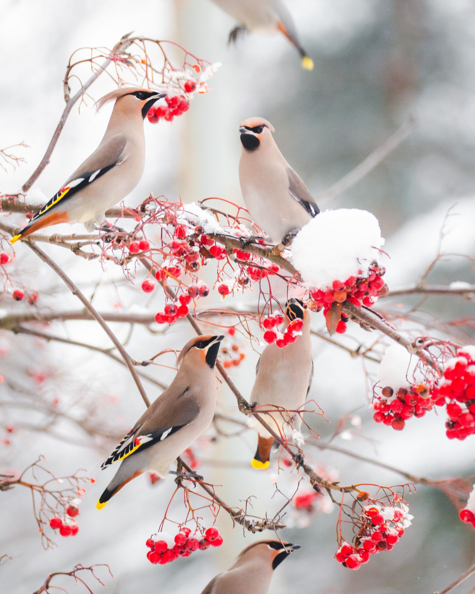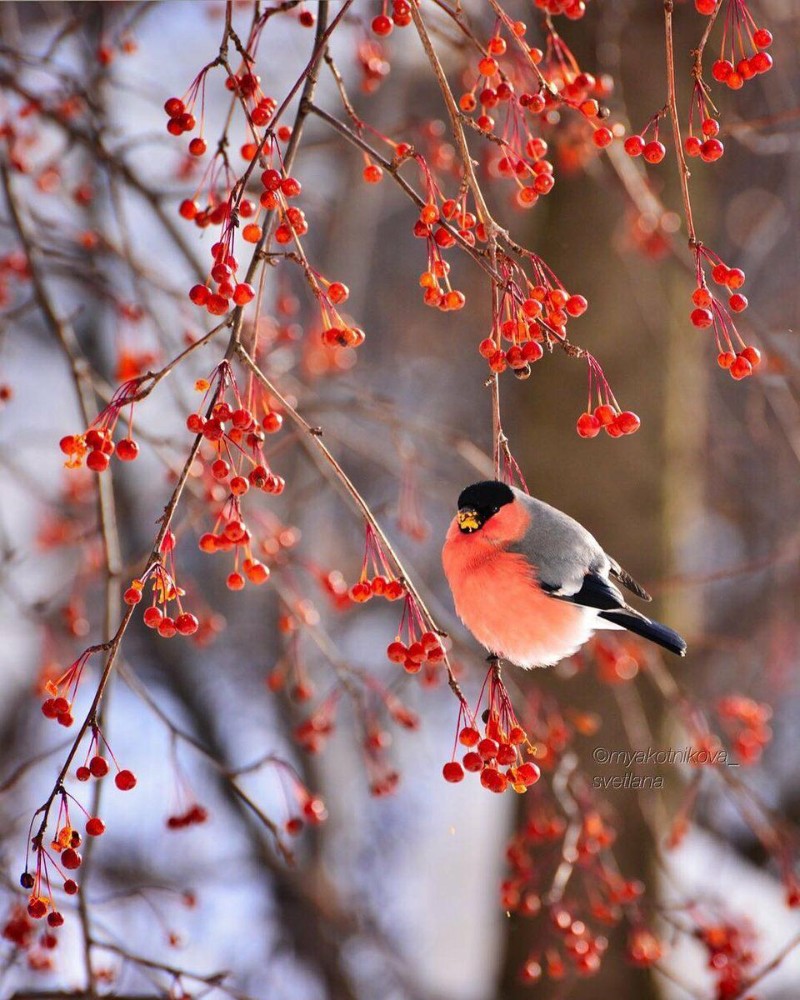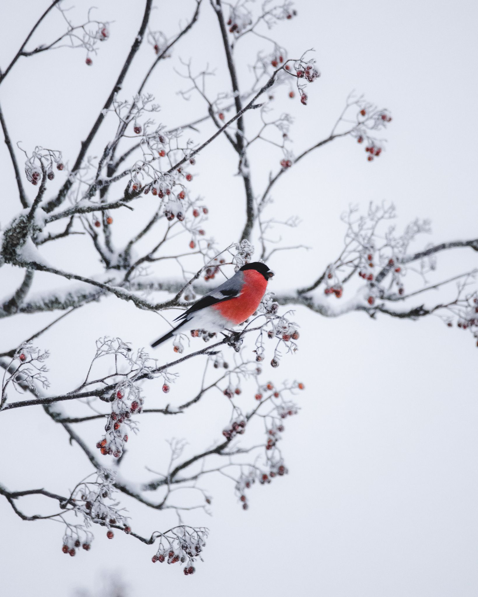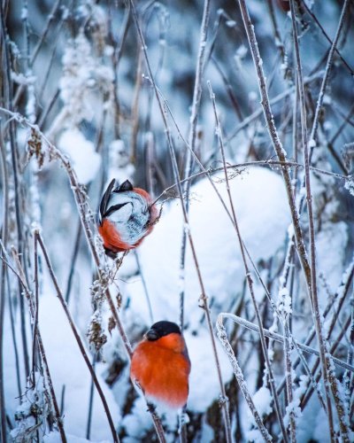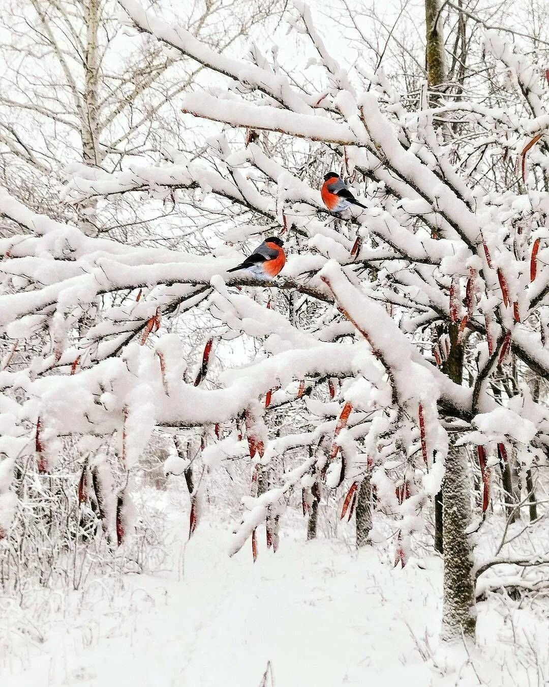 Зимой на заснеженных ветках часто можно увидеть ярких снегирей, которые с удовольствием клюют спелые ягоды рябины. Эти птицы создают неповторимую атмосферу зимнего леса, и вертикальные обои с таким сюжетом идеально подойдут для смартфона. Посмотрите, как красиво сочетаются красные ягоды и пестрое оперение птиц на белом снегу.