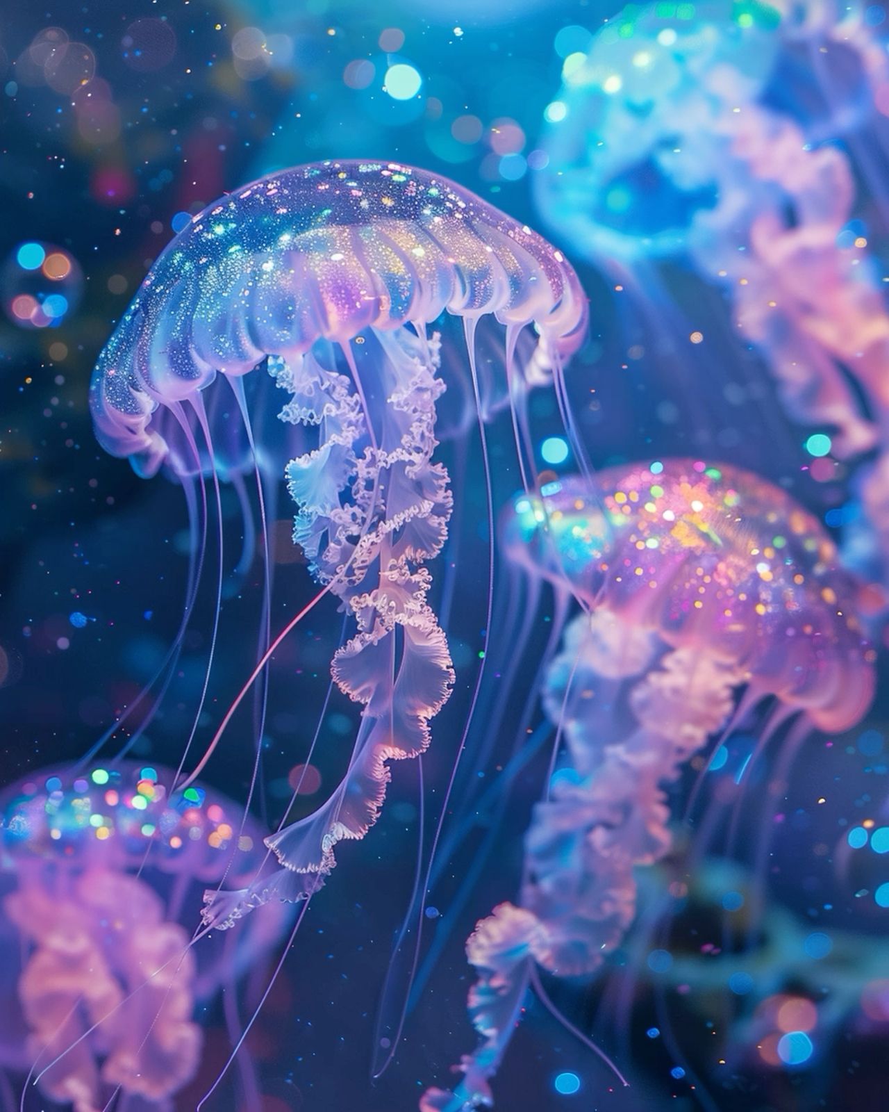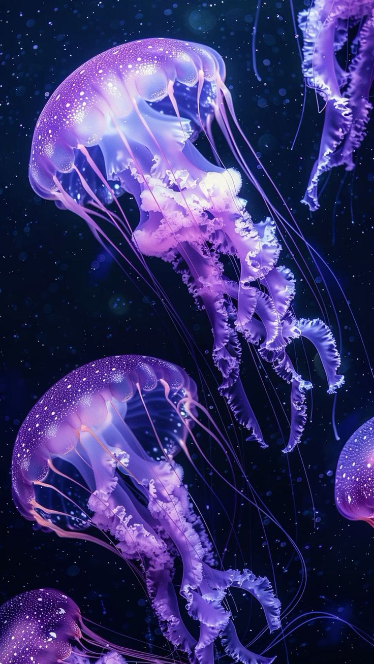Эти вертикальные обои с медузами создают завораживающую атмосферу на экране телефона. Тонкие щупальца и переливающиеся цвета медуз выглядят особенно эффектно в портретной ориентации. Когда вы смотрите на экран, кажется, будто медузы медленно плывут в глубине океана.