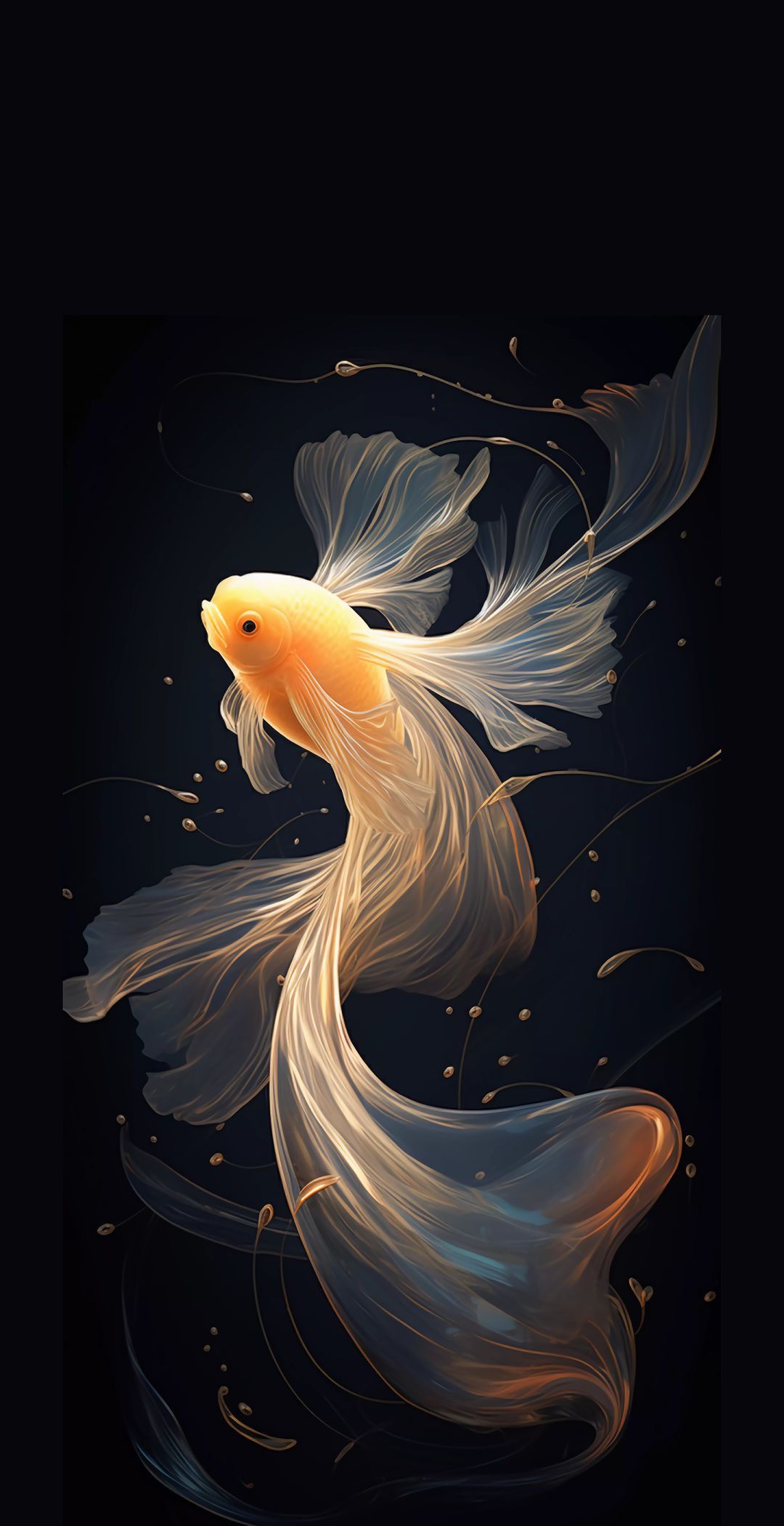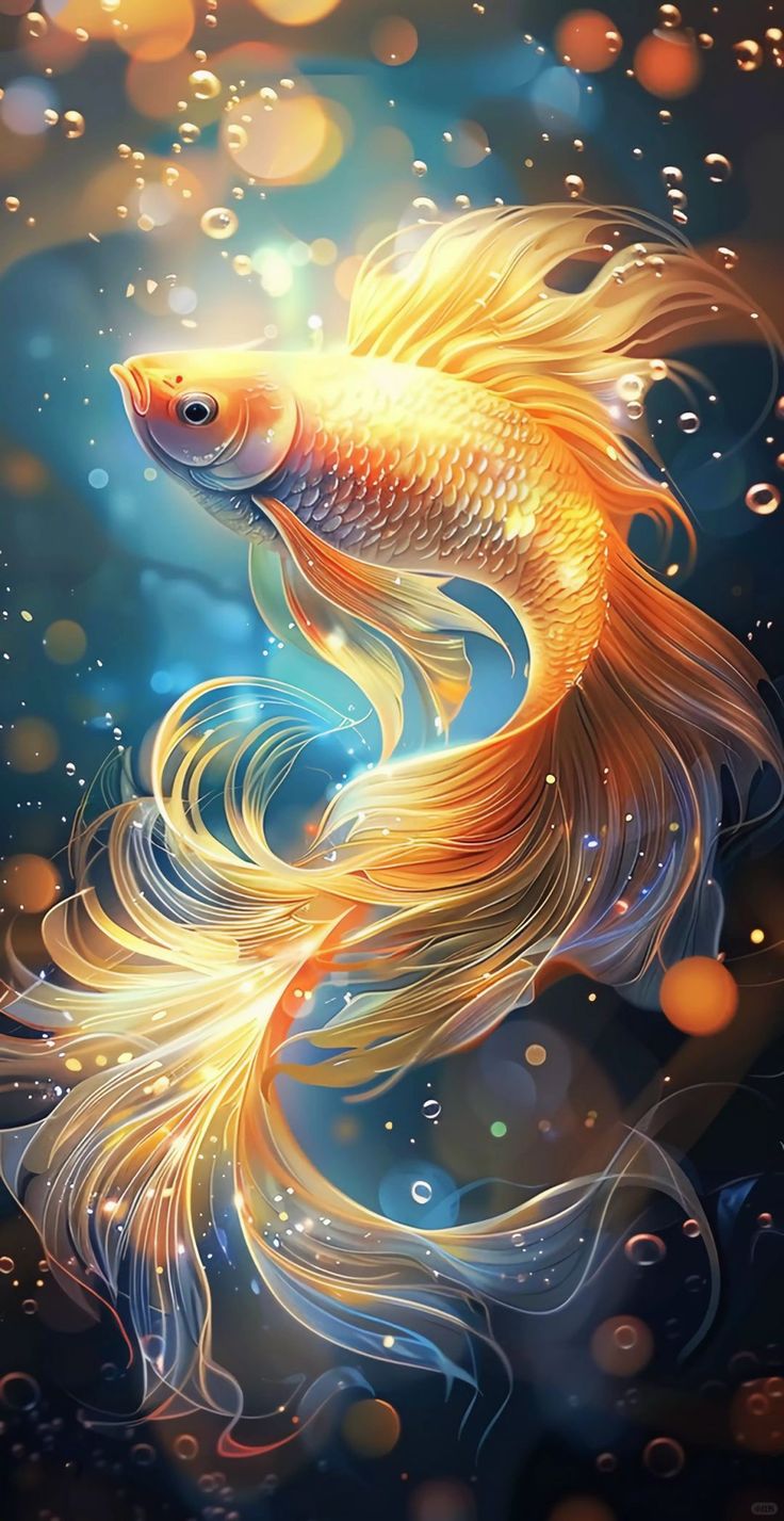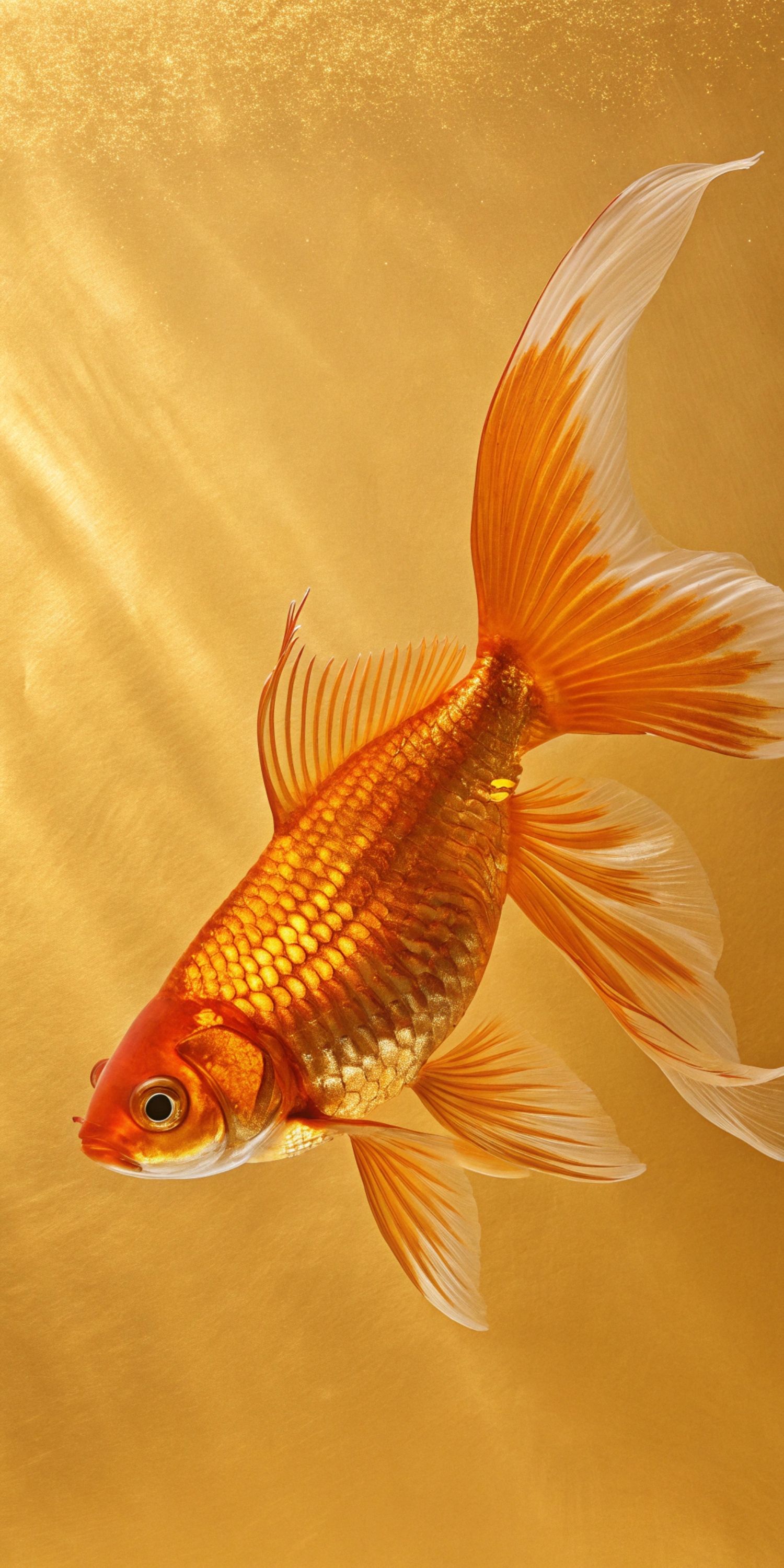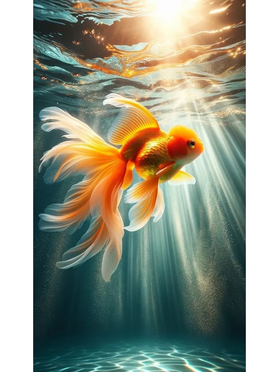 Представьте себе аквариум прямо на экране вашего смартфона - вертикальные обои с золотой рыбкой создают такую иллюзию. Эта сказочная рыбка плывет среди водорослей, отражая золотистые блики света. Такой дизайн добавляет загадочности и уюта вашему мобильному устройству.