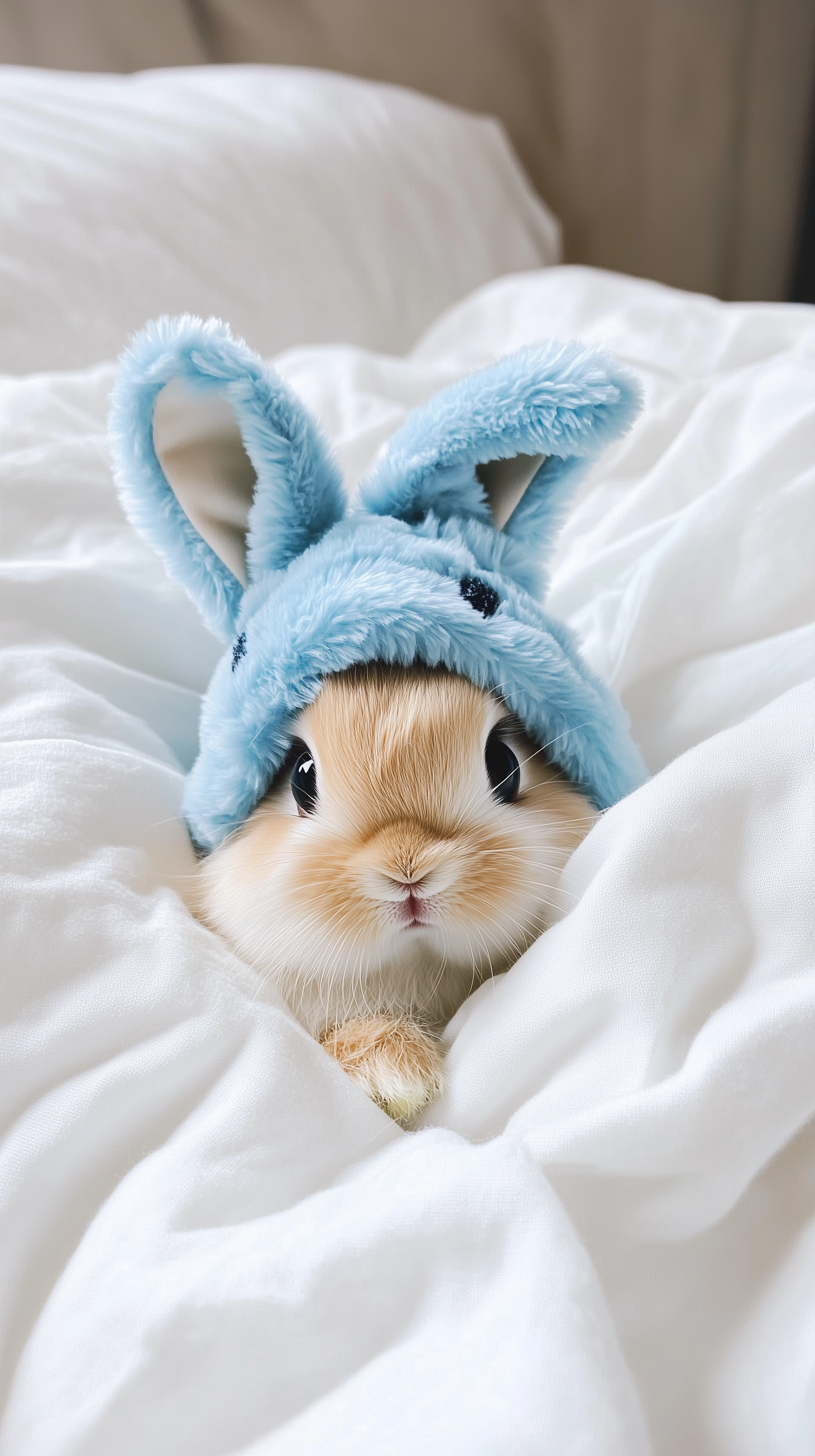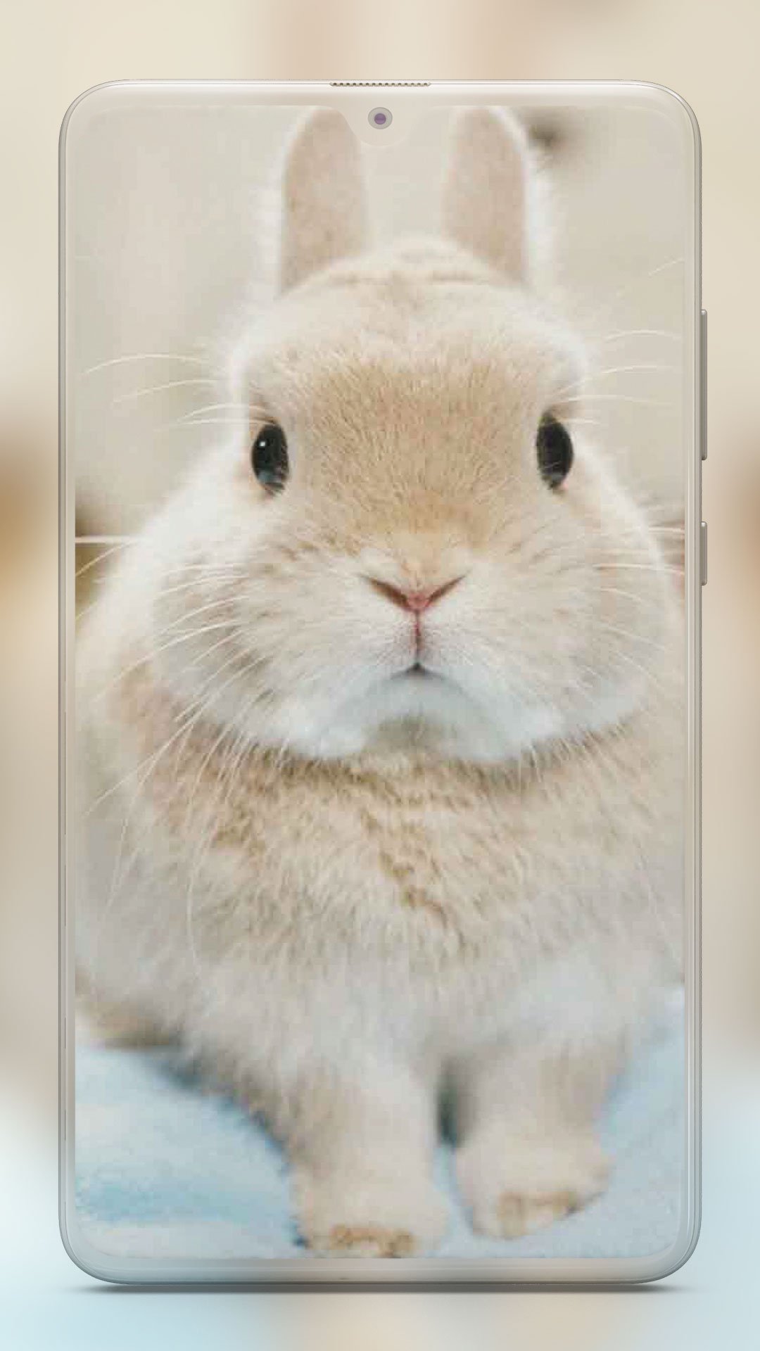 На экране смартфона домашний кролик смотрит большими глазами, создавая уютную атмосферу. Вертикальные обои с этим милым животным идеально подходят для телефона, чтобы подчеркивать его компактность. Милый пушистый кролик, на фоне нежных тонов, добавляет нотку тепла к повседневным делам.