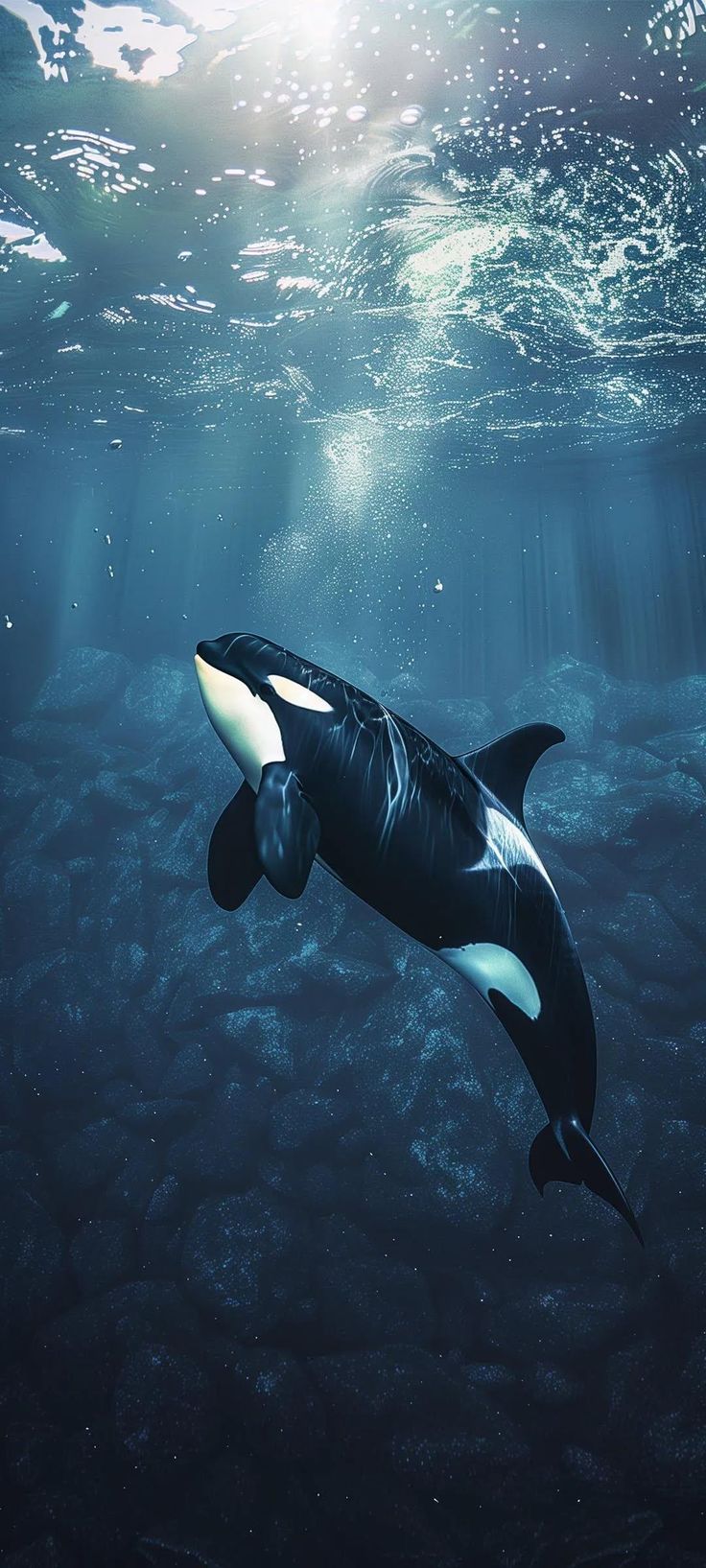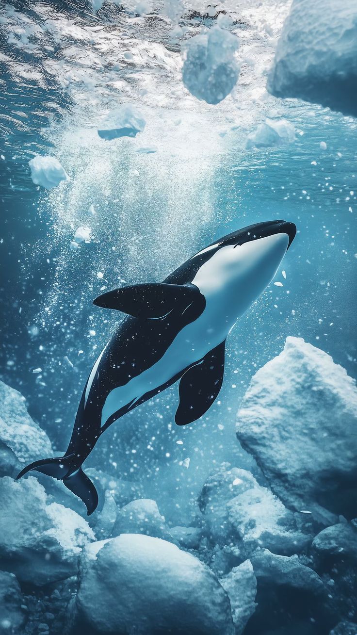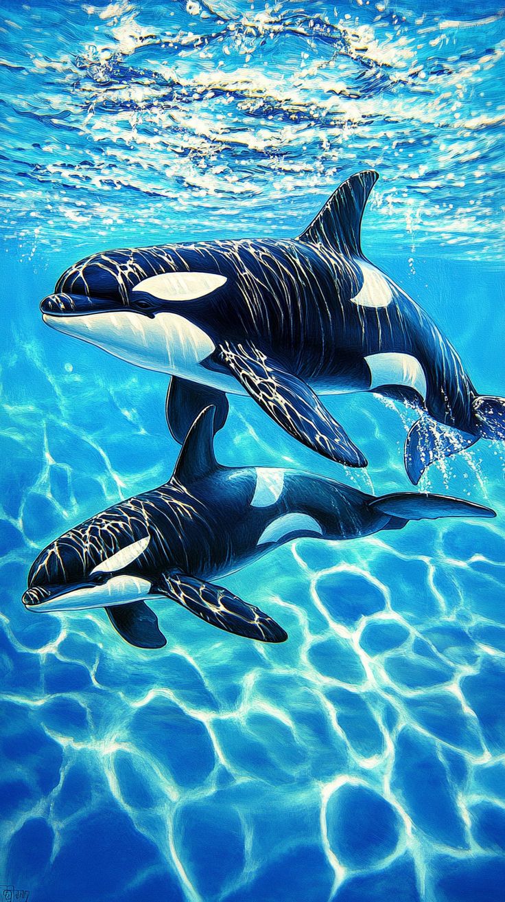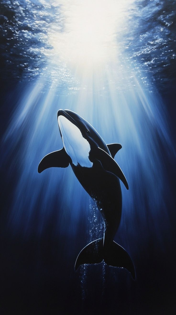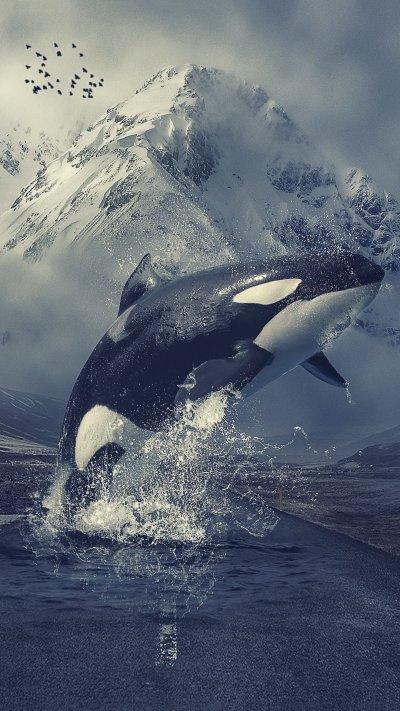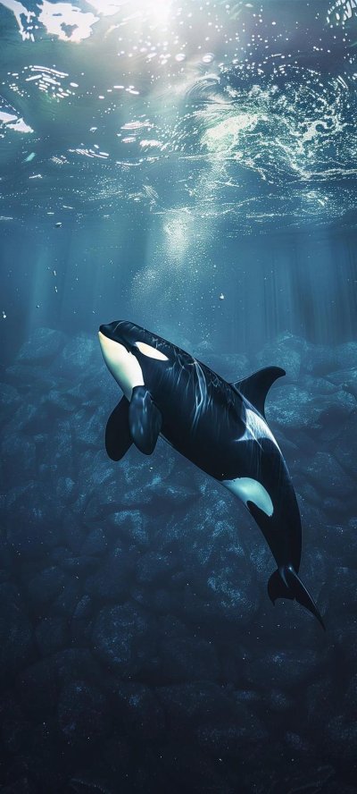 Вертикальные обои с изображением косатки на смартфоне завораживают своей мощью и грацией. Когда смотришь на экран, чувствуешь, будто величественное морское существо плывет прямо навстречу. Особенно впечатляет, как черно-белые тона косатки контрастируют с водной средой в вертикальном формате.