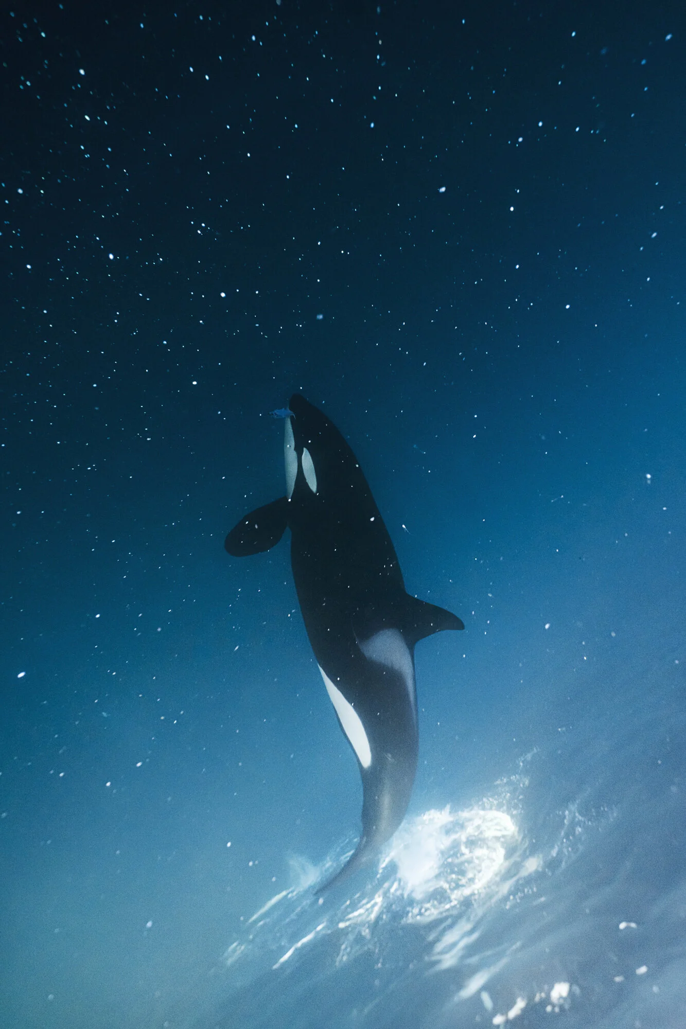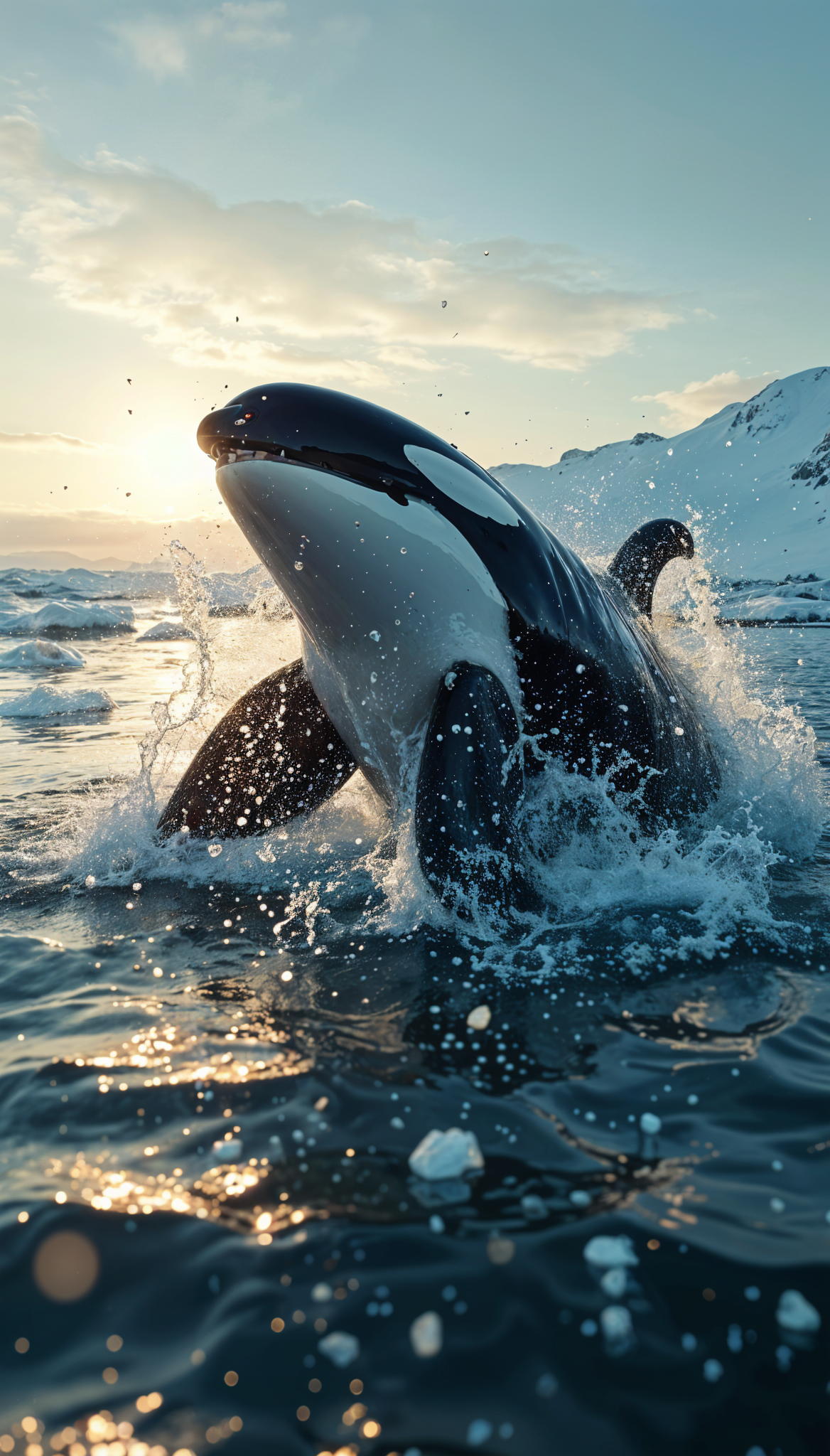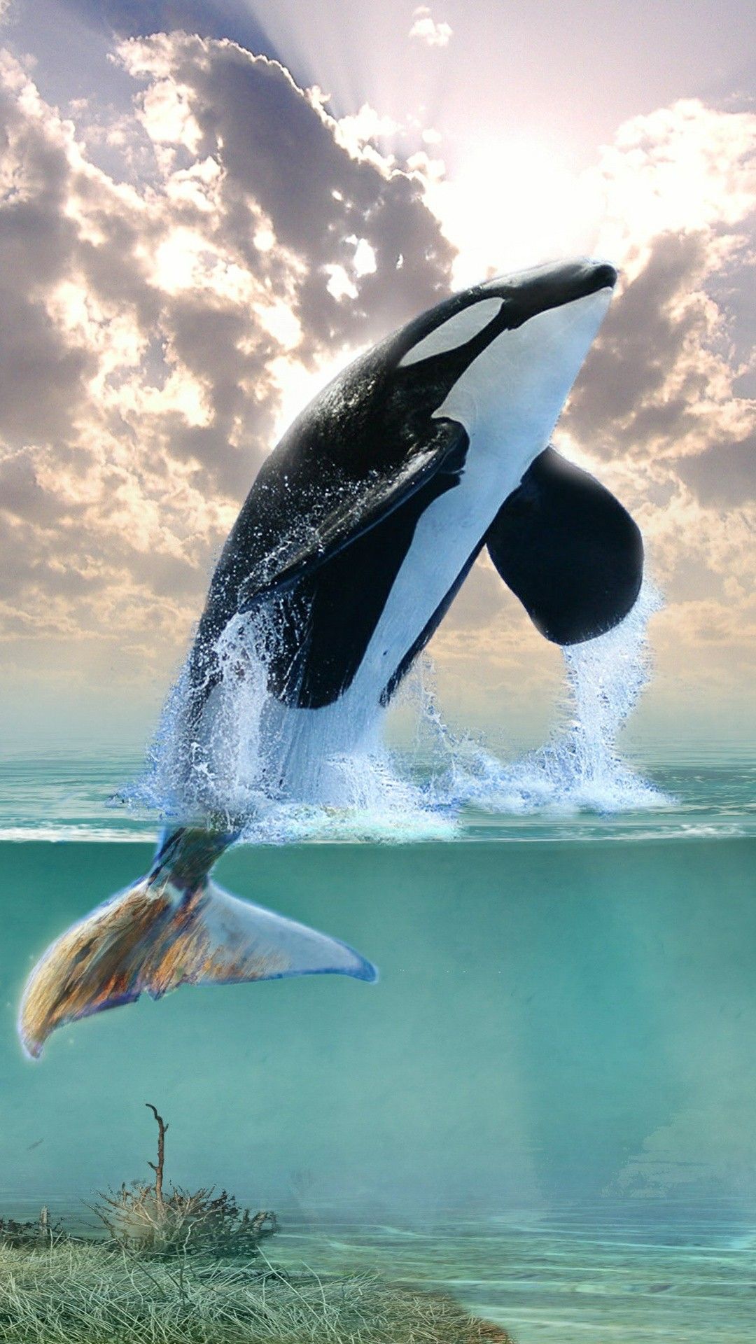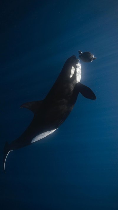Вертикальные обои с изображением косатки на смартфоне завораживают своей мощью и грацией. Когда смотришь на экран, чувствуешь, будто величественное морское существо плывет прямо навстречу. Особенно впечатляет, как черно-белые тона косатки контрастируют с водной средой в вертикальном формате.