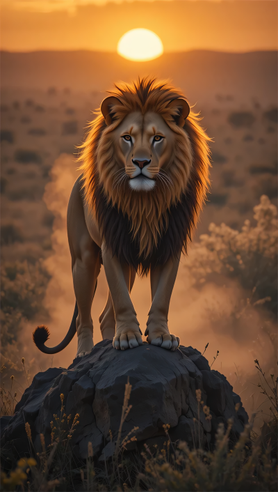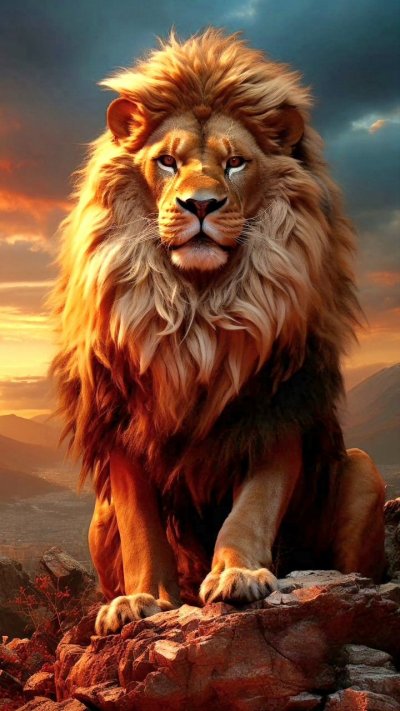 Величественный лев гордо стоит на скале, его золотистая грива развевается на ветру. Эти вертикальные обои передают мощь и грацию царя зверей, идеально подходя для экрана смартфона. Каждый взгляд на такой фон напоминает о дикой природе и королевском достоинстве.
