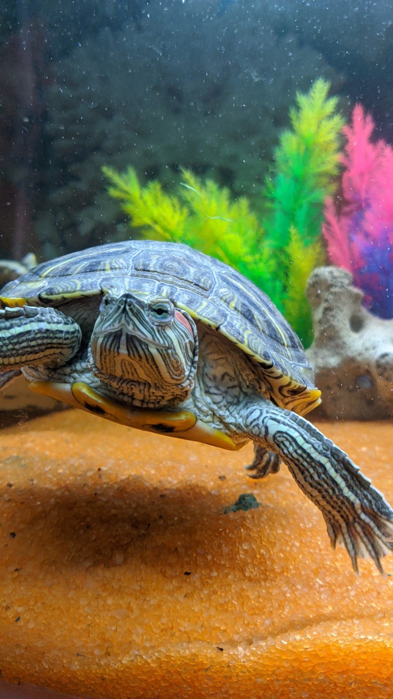 Красноухие черепахи выглядят так мило на обоях телефона. Эти водные рептилии с яркими красными пятнами на голове создают уютную атмосферу на экране смартфона, особенно когда плавают среди зеленых водорослей. Такие обои идеально подойдут для любителей природы и аквариумистики.