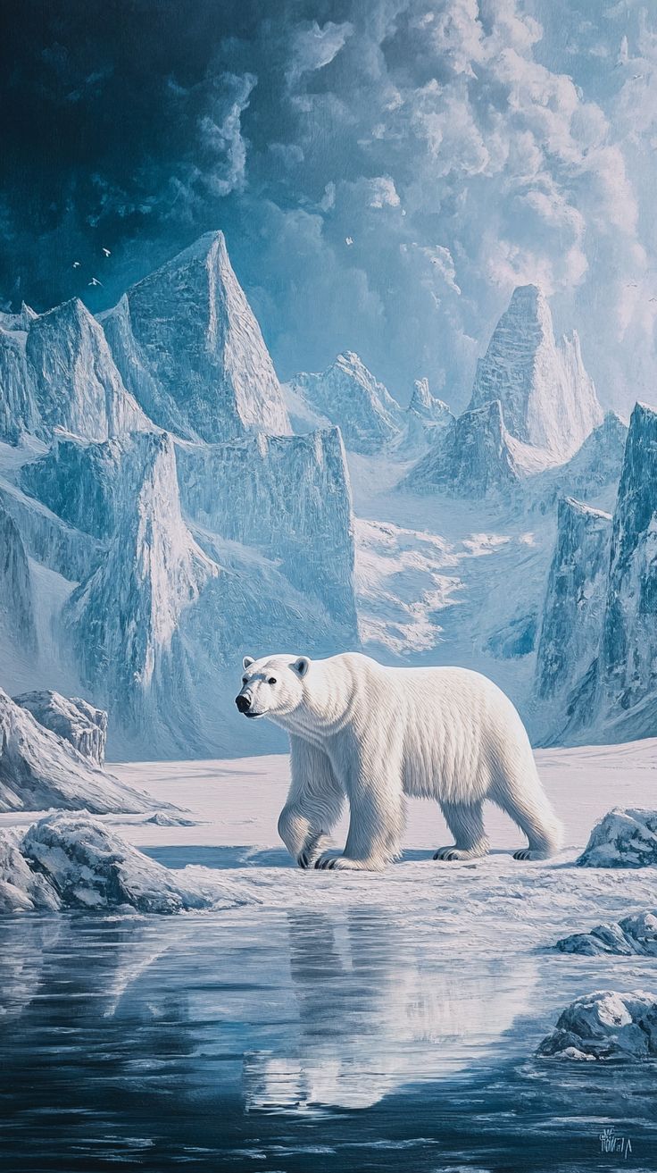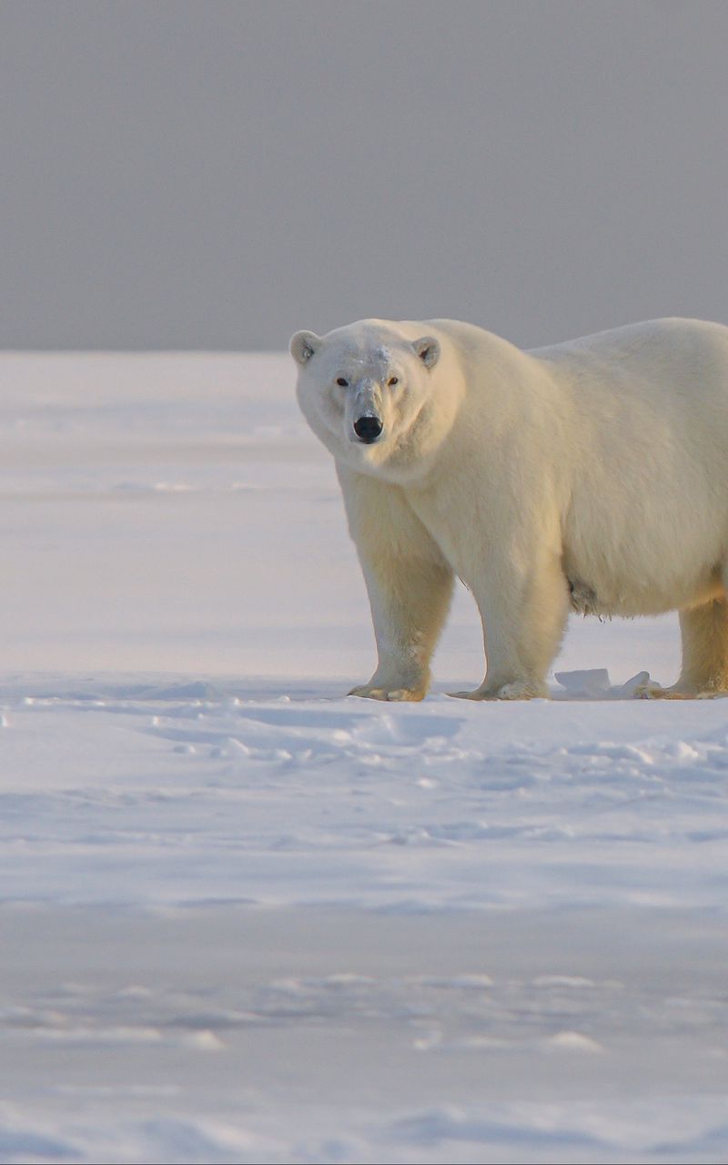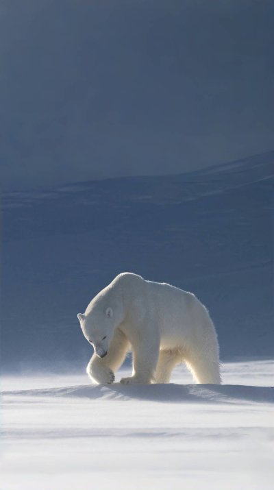 Белый медведь на вертикальных обоях для телефона выглядит потрясающе в своей естественной среде. Эти обои идеально подходят для любителей дикой природы и добавляют нотку арктической свежести на экран смартфона. Каждый раз, когда вы разблокируете телефон, белый медведь напомнит о величии северных просторов.