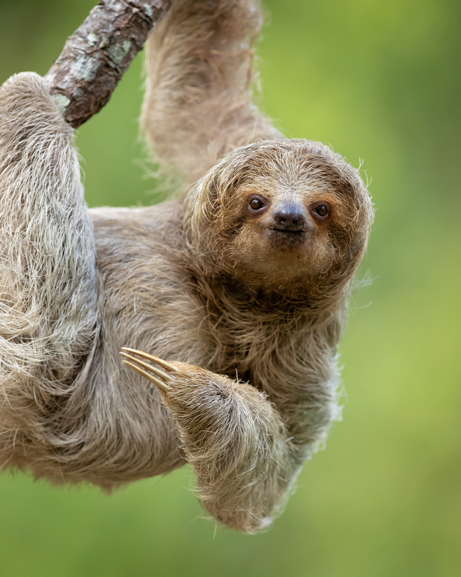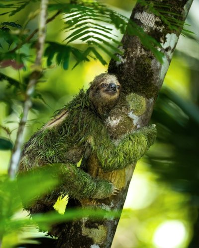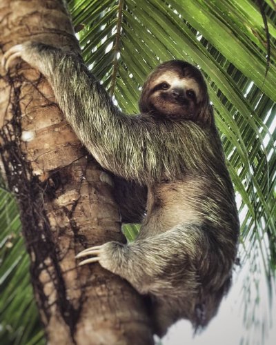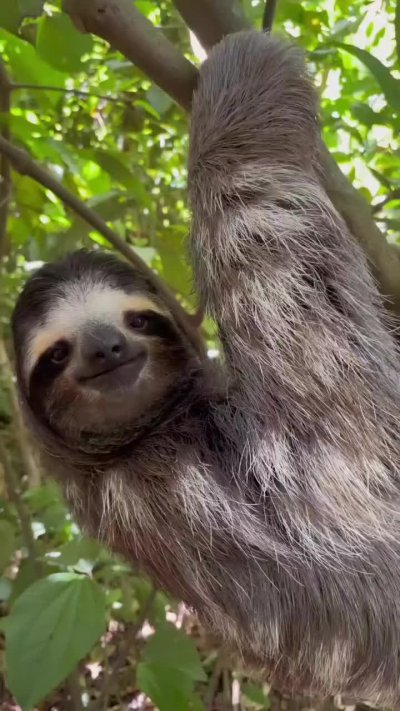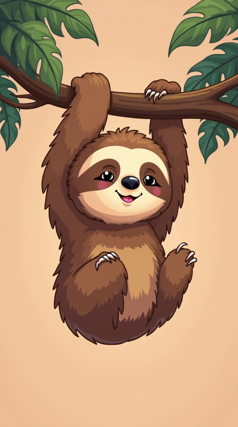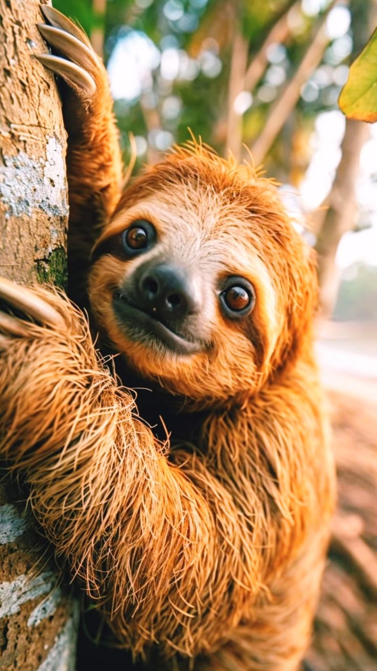 Медлительный ленивец висит вниз головой на ветке тропического дерева, лениво пережевывая листья. Эти вертикальные обои с ленивцем принесут атмосферу тропического леса и спокойствия на экран вашего смартфона. Обратите внимание на длинные когти и задумчивое выражение мордочки этого необычного животного.