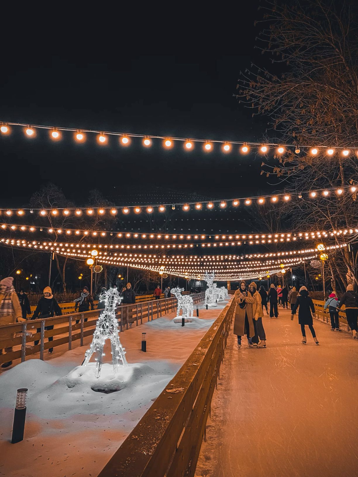 Зимний ледовый каток всегда создает особую атмосферу праздника, где лед блестит под огнями, а фигуристы кружатся в грациозных движениях. На этих вертикальных обоях для телефона запечатлены именно такие моменты - чистый лед, снег вокруг и ощущение холода. Когда устанавливаешь такую картинку на смартфон, кажется, что зима уже пришла.