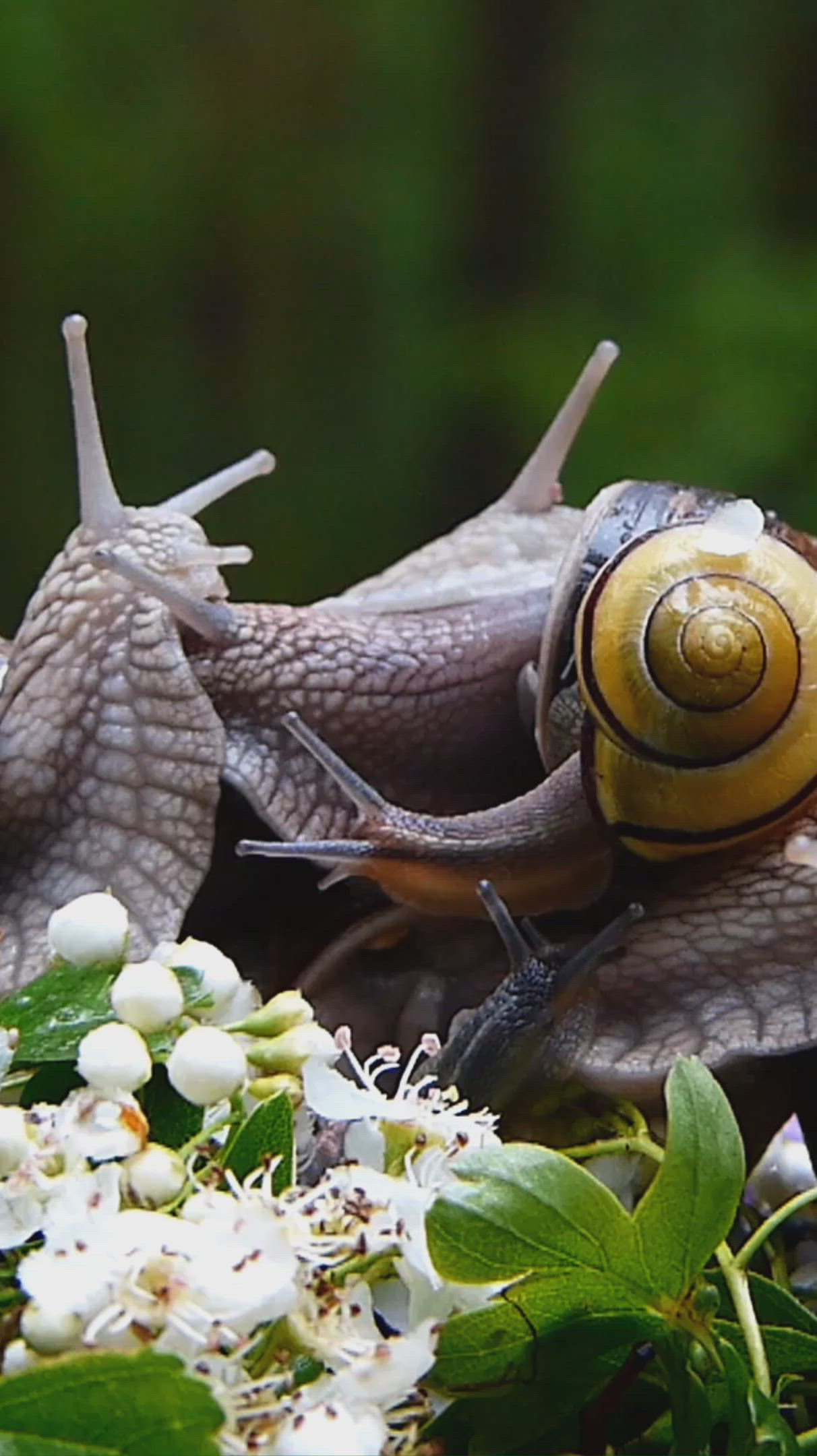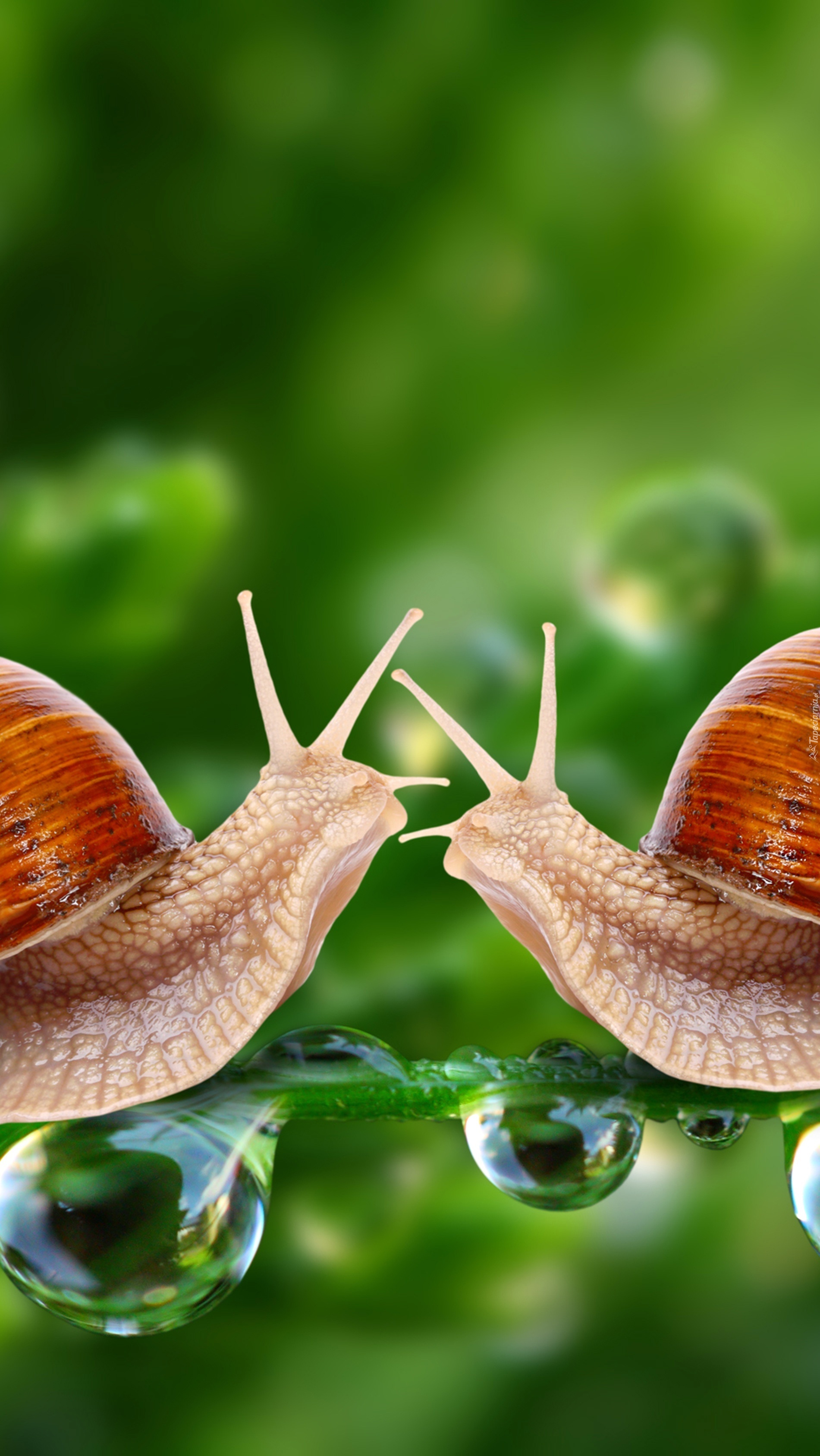 Эти милые улитки ползут по нежным листочкам, создавая удивительную атмосферу спокойствия на вашем экране. Кажется, они вот-вот оживут и продолжат свое неспешное путешествие. А вы замечали, как их спиралевидные домики напоминают миниатюрные архитектурные шедевры природы?