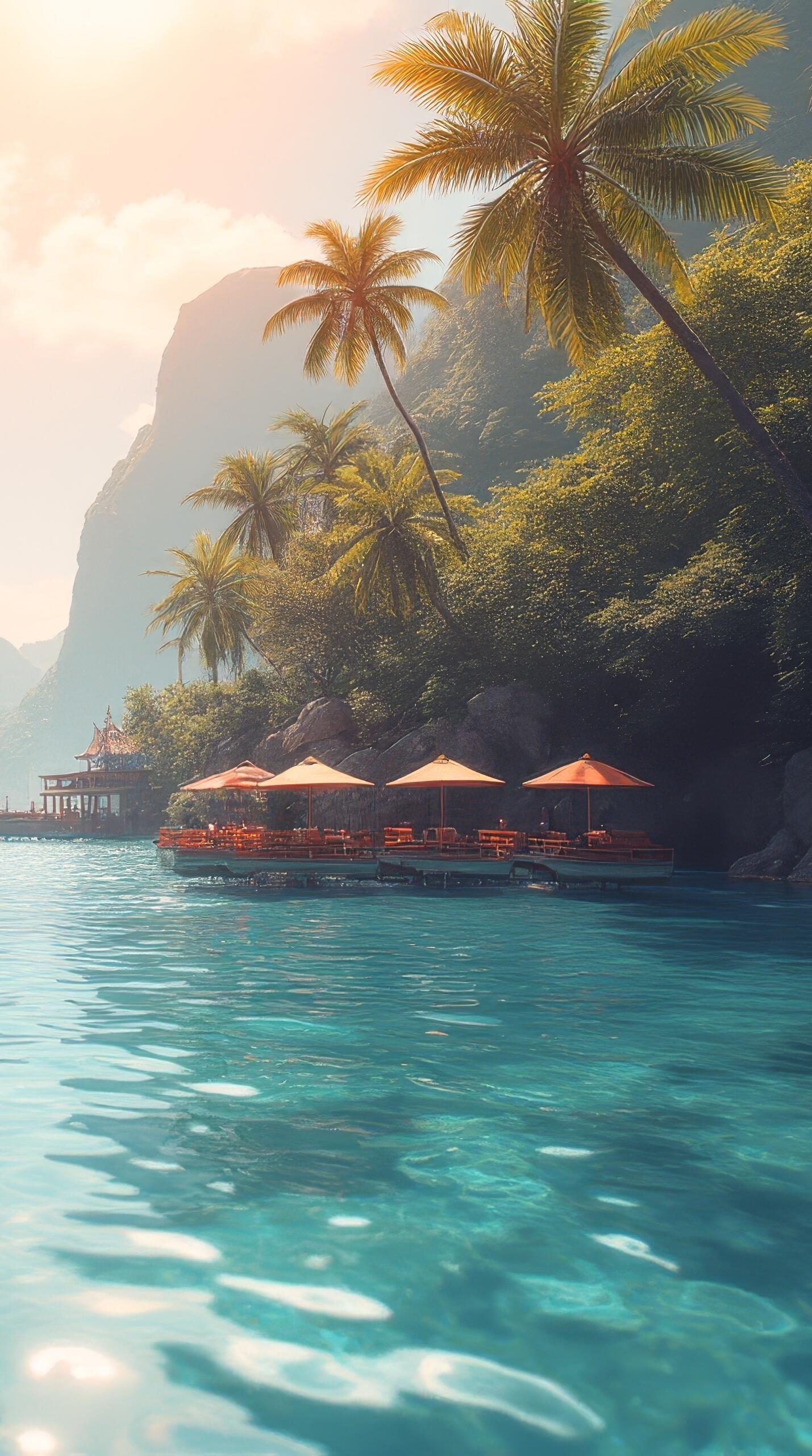 На экране телефона лагуна предстает в своем полуденном великолепии, отражая лазурную воду и зеленые берега. Мягкие тона и спокойные волны создают атмосферу умиротворения каждый раз, когда вы берете смартфон в руки. Такие вертикальные обои идеально подойдут для тех, кто ценит природную красоту в повседневной жизни.