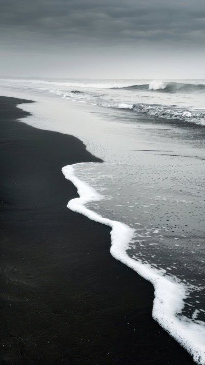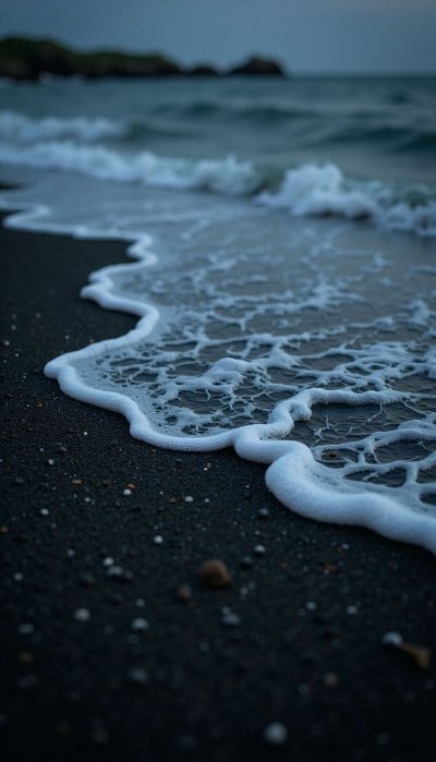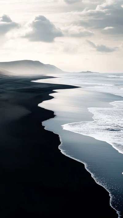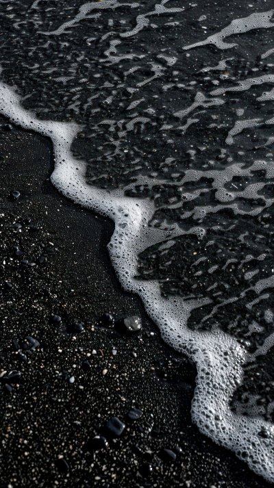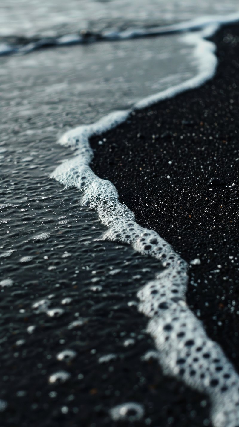 Черный песок создает таинственную атмосферу, притягивая взгляд своими глубокими оттенками. В вертикальном формате эти обои идеально подходят для смартфона, подчеркивая элегантность дисплея. Каждое зернышко песка оживает на экране, создавая неповторимую текстуру.