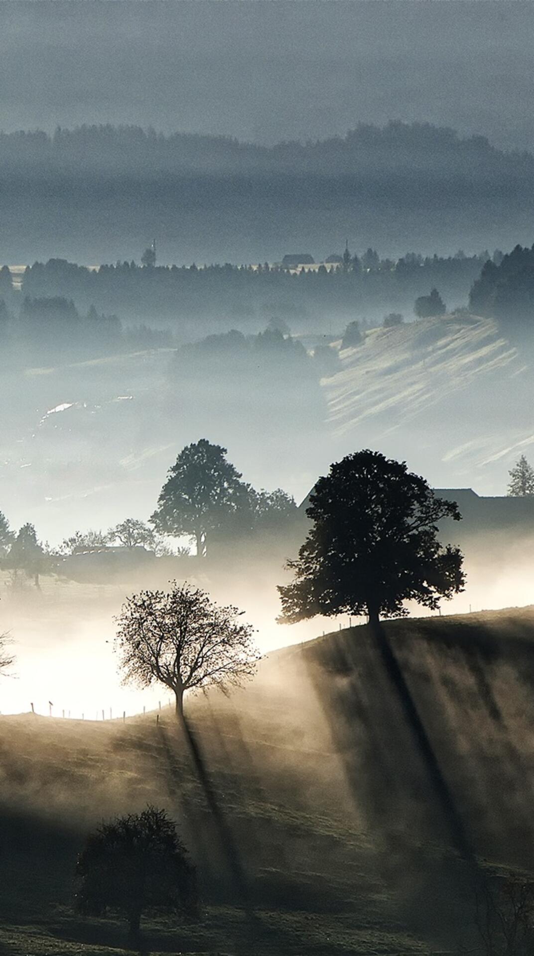 В туманном утре есть особая магия, которая успокаивает душу после долгой ночи. Вертикальные обои с таким видом на телефон создают атмосферу спокойствия в вашем смартфоне. Когда просыпаешься и видишь подобное на экране, весь день проходит совсем иначе.