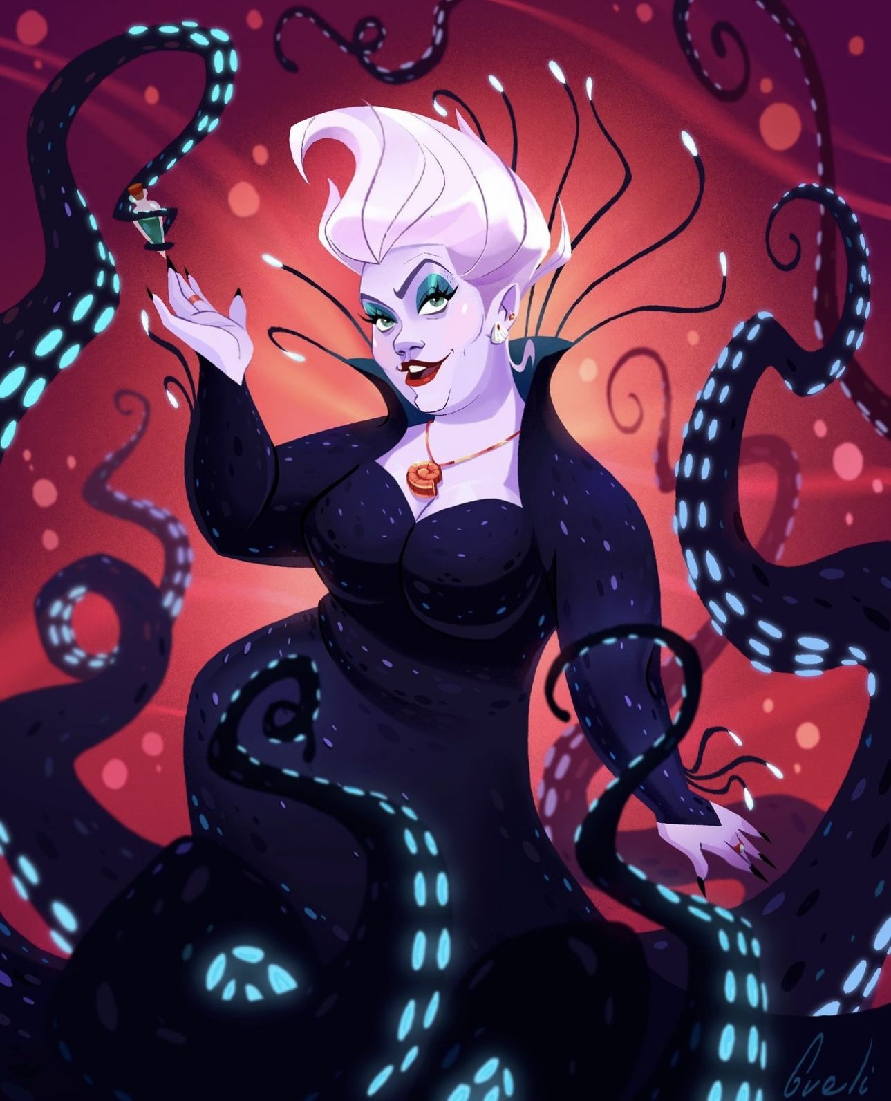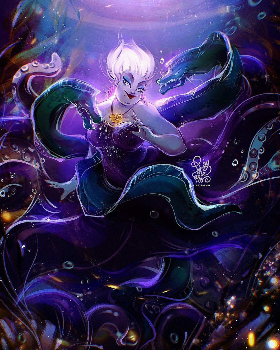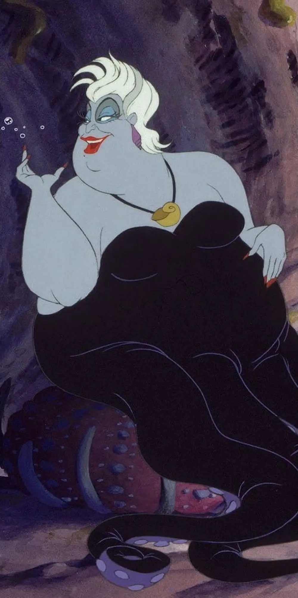 Урсула предстает в этих вертикальных обоях во всей своей темной красоте, словно вынырнув из глубин океана. Каждое изображение передает ее властную силу и загадочность, создавая атмосферу морской магии прямо на экране вашего смартфона. Установите эти обои и почувствуйте мощь морской колдуньи каждый раз, когда смотрите на телефон.