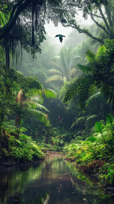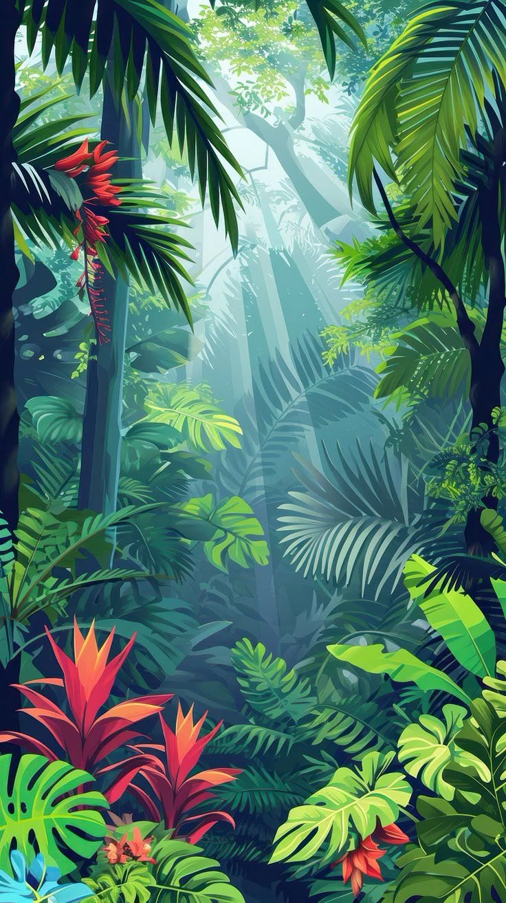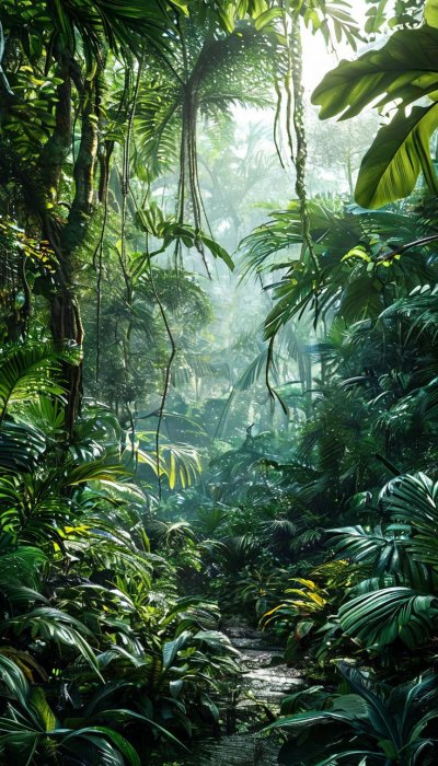 Густая зелень джунглей на этих вертикальных обоях создает ощущение погружения в тропический мир, где каждый лист и ветка передают атмосферу дикой природы. Эти обои с джунглями идеально подходят для смартфона, добавляя экзотическое настроение вашему устройству. Скачайте и установите себе на телефон, чтобы окружить себя зеленью тропиков.