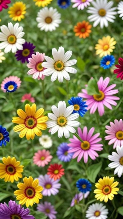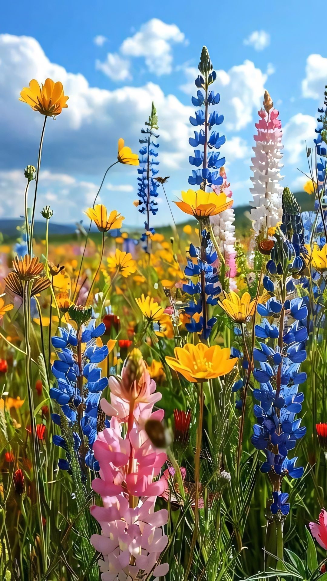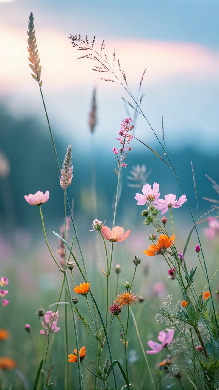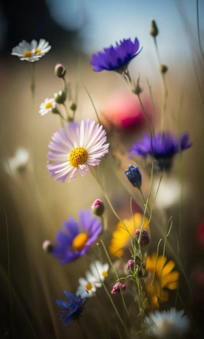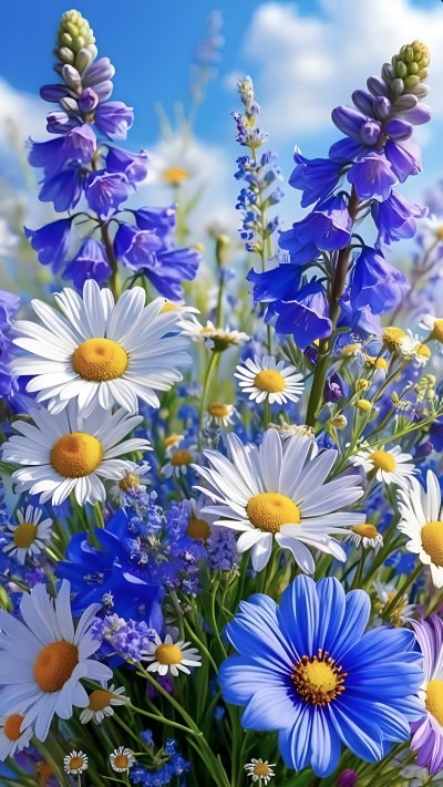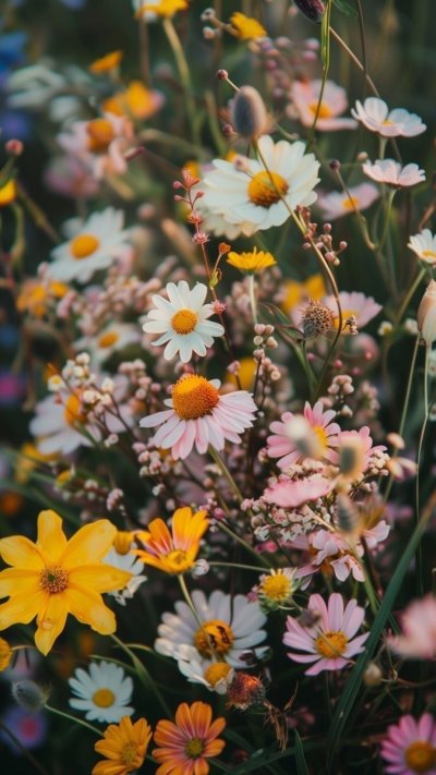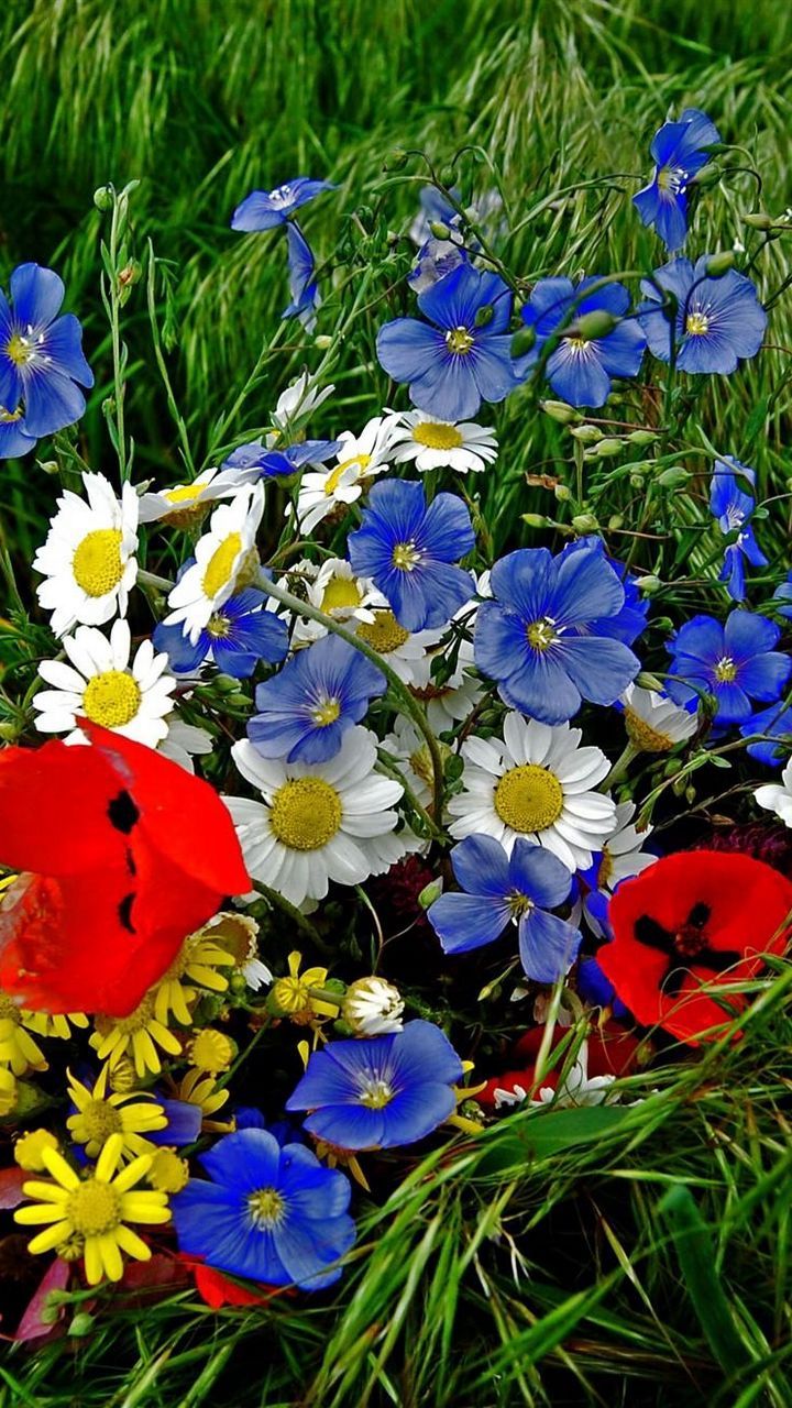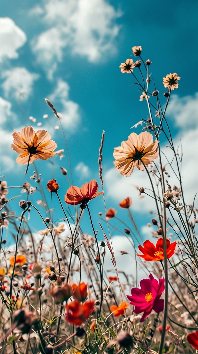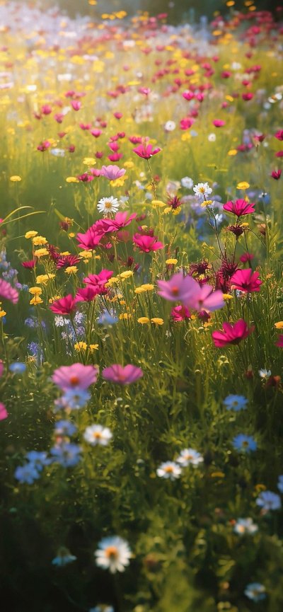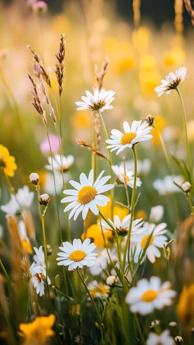 Луговые цветы наполняют экран телефона естественной красотой, когда ромашки и васильки переплетаются с зеленой травой под открытым небом. Каждая подборка передает атмосферу летнего луга, где яркие бутоны создают живописную композицию для вертикального формата. Установите эти природные обои и наслаждайтесь свежестью полевых цветов каждый день.