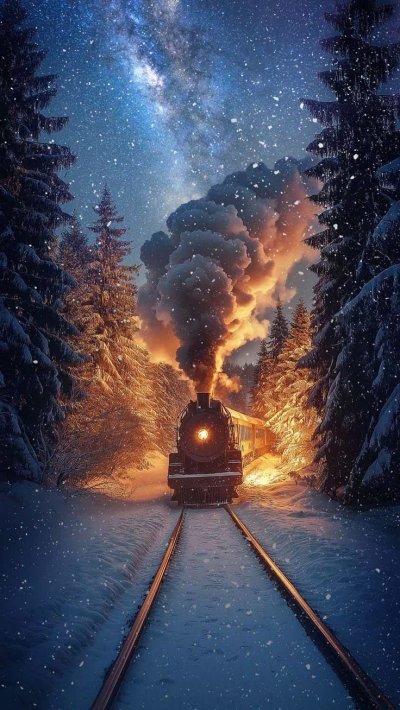 Ночной поезд мчится сквозь темноту, оставляя за собой светящиеся следы окон и таинственную атмосферу путешествия. Каждое изображение передает романтику ночных переездов и загадочность железнодорожных маршрутов. Скачайте понравившиеся обои и установите их на свой телефон.