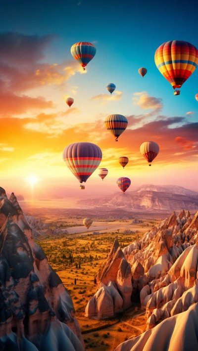 Каппадокия поражает необычными скальными образованиями, которые создают фантастические пейзажи. Воздушные шары над долинами добавляют волшебства каждому кадру. Установите себе на телефон обои с загадочными пещерными городами и золотыми рассветами.