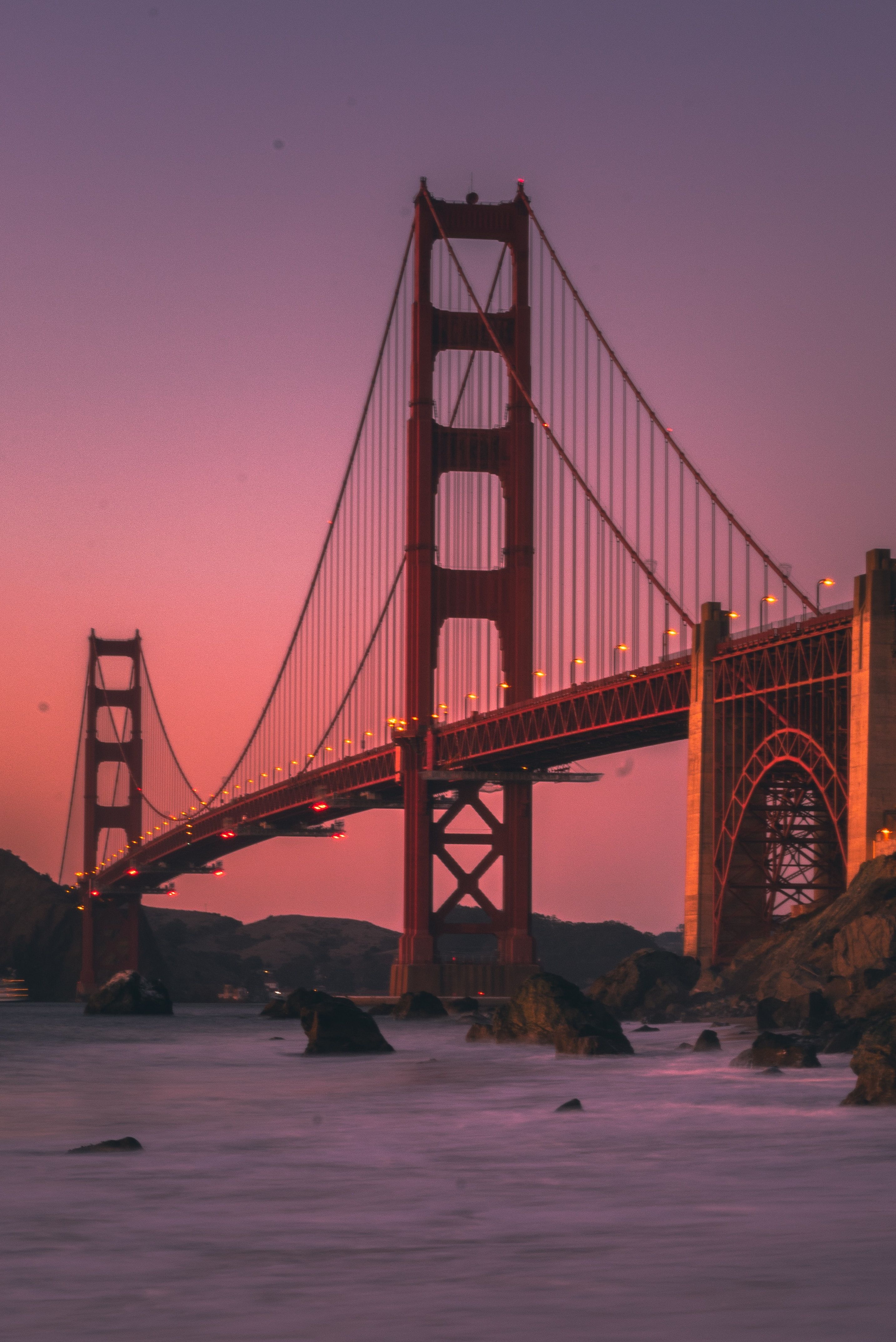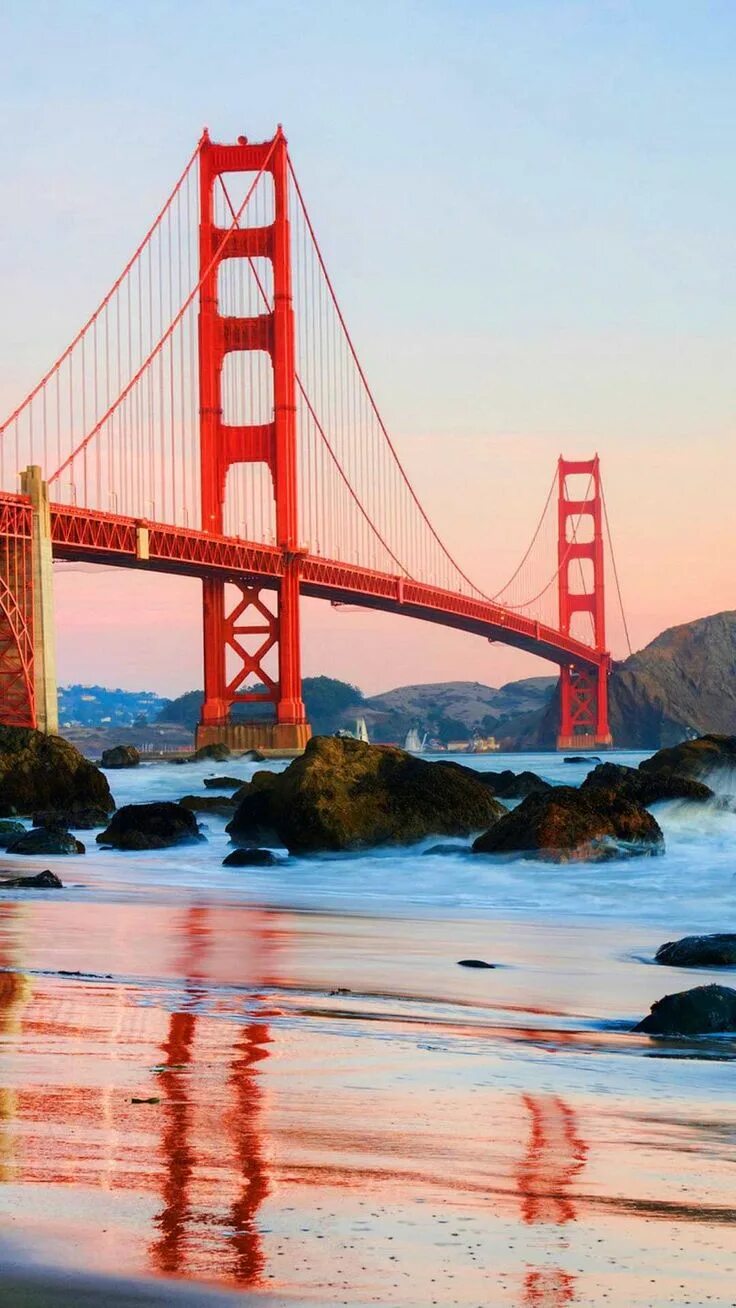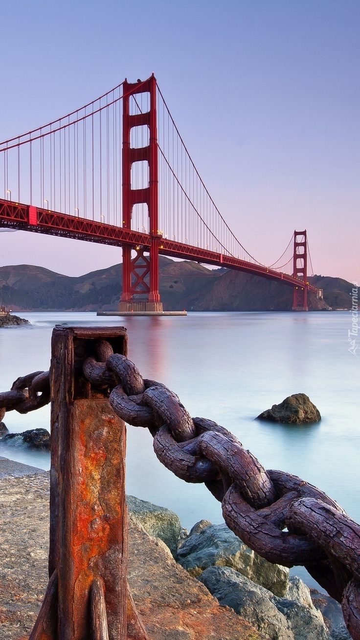 Знаменитый мост Золотые ворота предстает в подборке вертикальных обоев для телефона во всей красе. Архитектурное великолепие этого символа Сан-Франциско завораживает на закате, когда оранжевые оттенки переливаются в вечернем небе. Скачайте обои с золотыми воротами и установите на свой смартфон.
