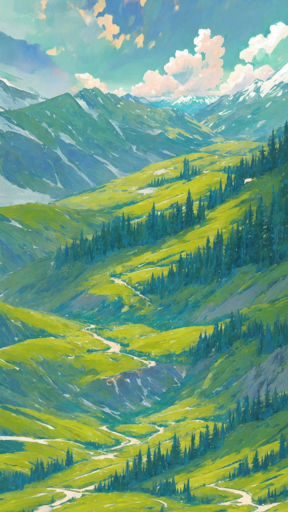 Горные долины простираются между величественными склонами, создавая умиротворяющие пейзажи. Подборка вертикальных обоев передает простор и красоту таких мест, которые идеально подходят для оформления экрана смартфона. Скачайте обои и наслаждайтесь видом горных долин каждый день.