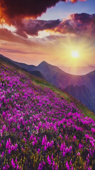 Цветущие долины радуют глаз буйством красок, когда травы и полевые цветы покрывают склоны пестрым ковром. Вертикальные обои с такими пейзажами создают ощущение свободы и гармонии с природой на экране смартфона. Установите себе на телефон обои с цветущими долинами и наслаждайтесь красотой природных ландшафтов.