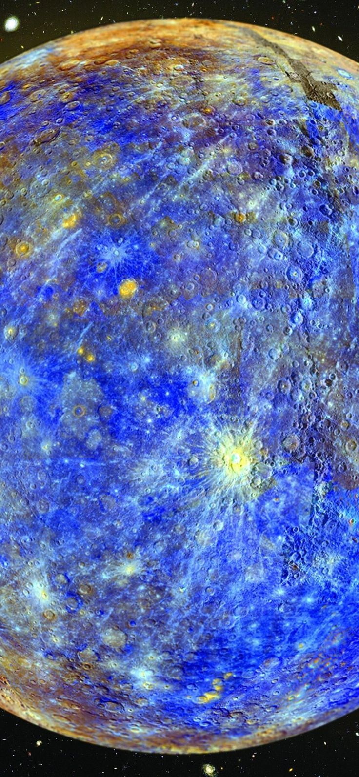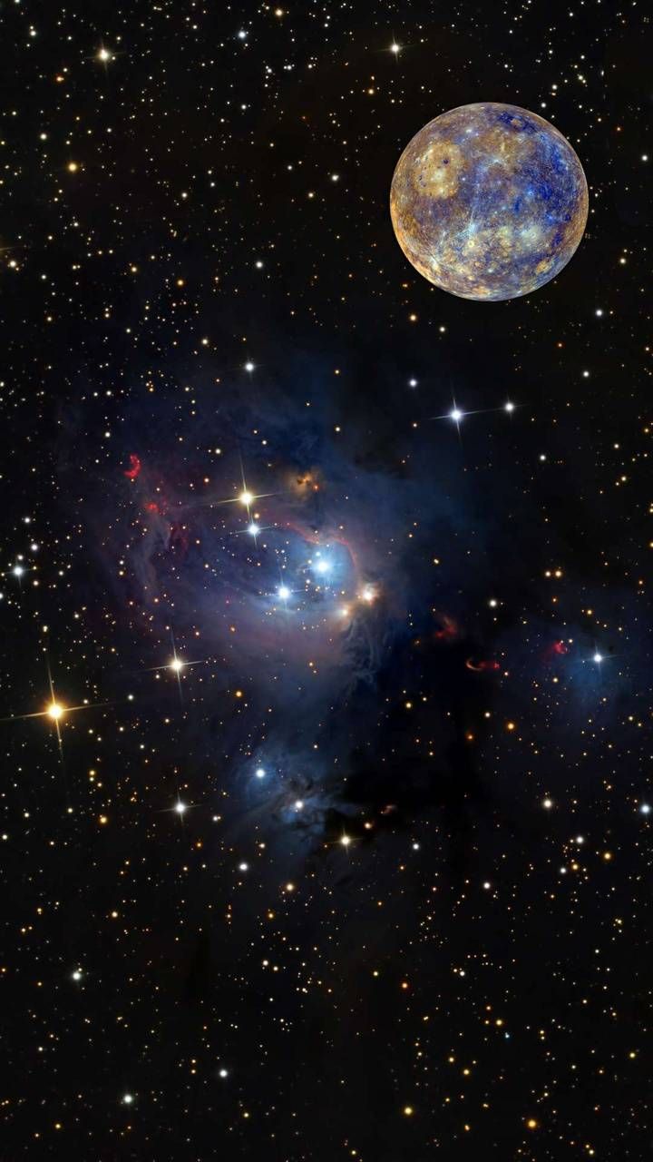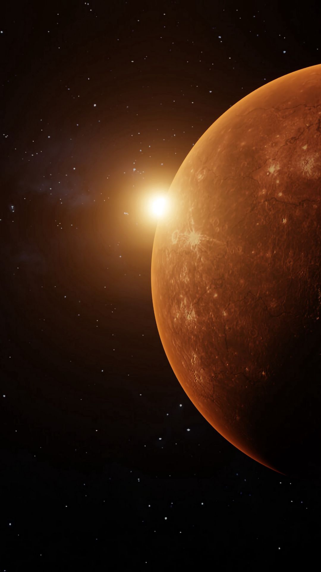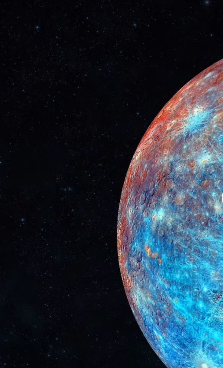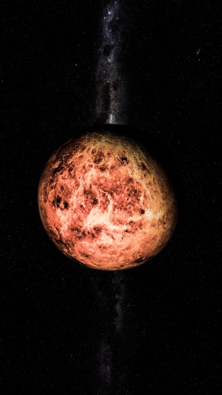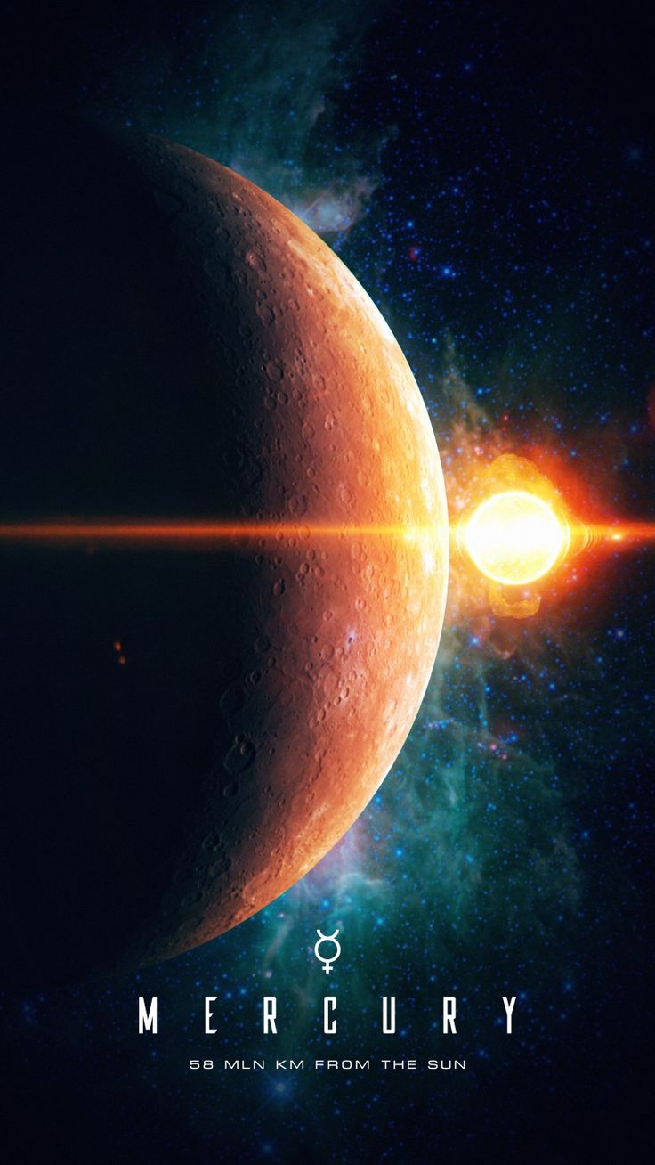 Меркурий ближе всех к Солнцу, поэтому его поверхность раскалена днем до невероятных температур. Несмотря на близость к звезде, ночью здесь становится очень холодно из-за отсутствия атмосферы. Скачай вертикальные обои с изображением первой планеты Солнечной системы и установи на свой смартфон.