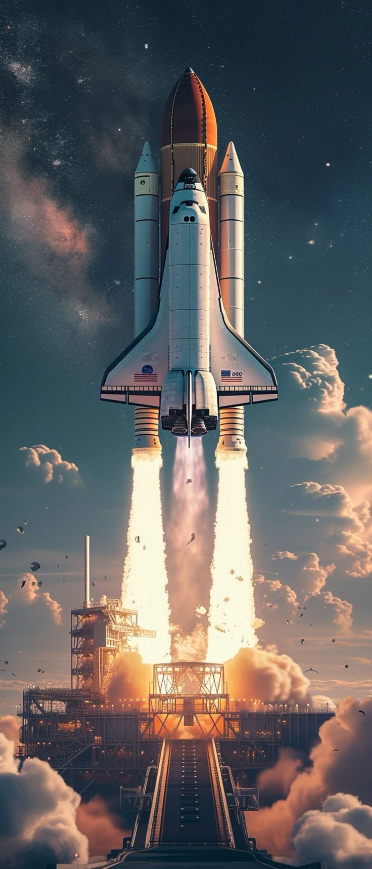 Мощные космические ракеты устремляются ввысь, создавая захватывающие вертикальные композиции для экрана смартфона. Каждое изображение передает величие космических технологий и романтику покорения Вселенной. Скачайте обои с ракетами и установите себе на телефон.