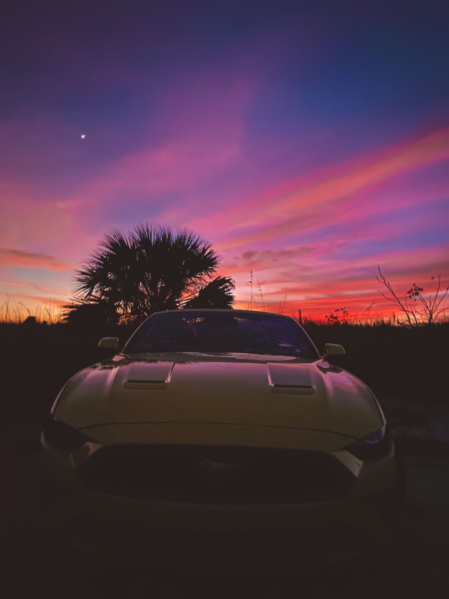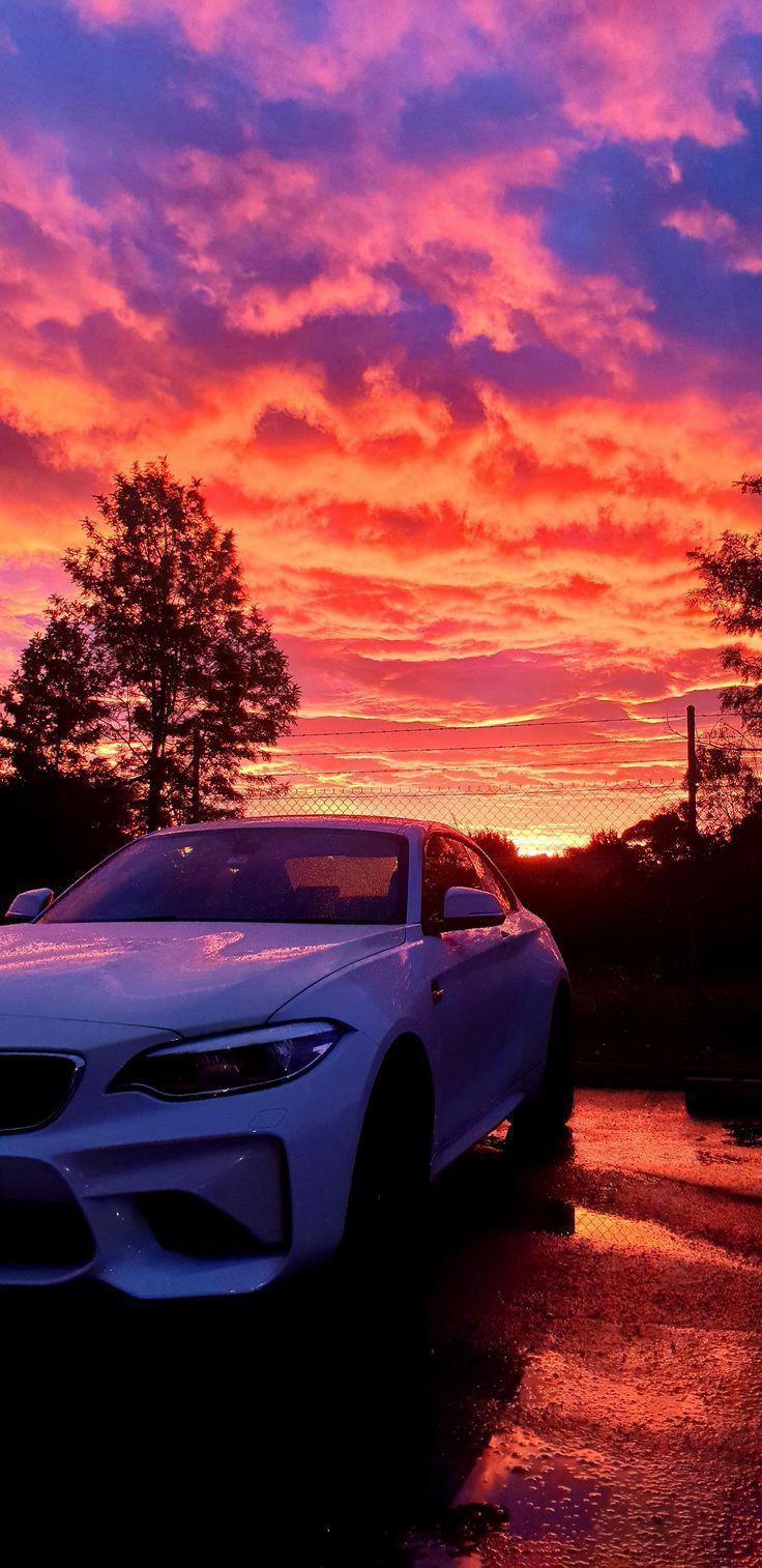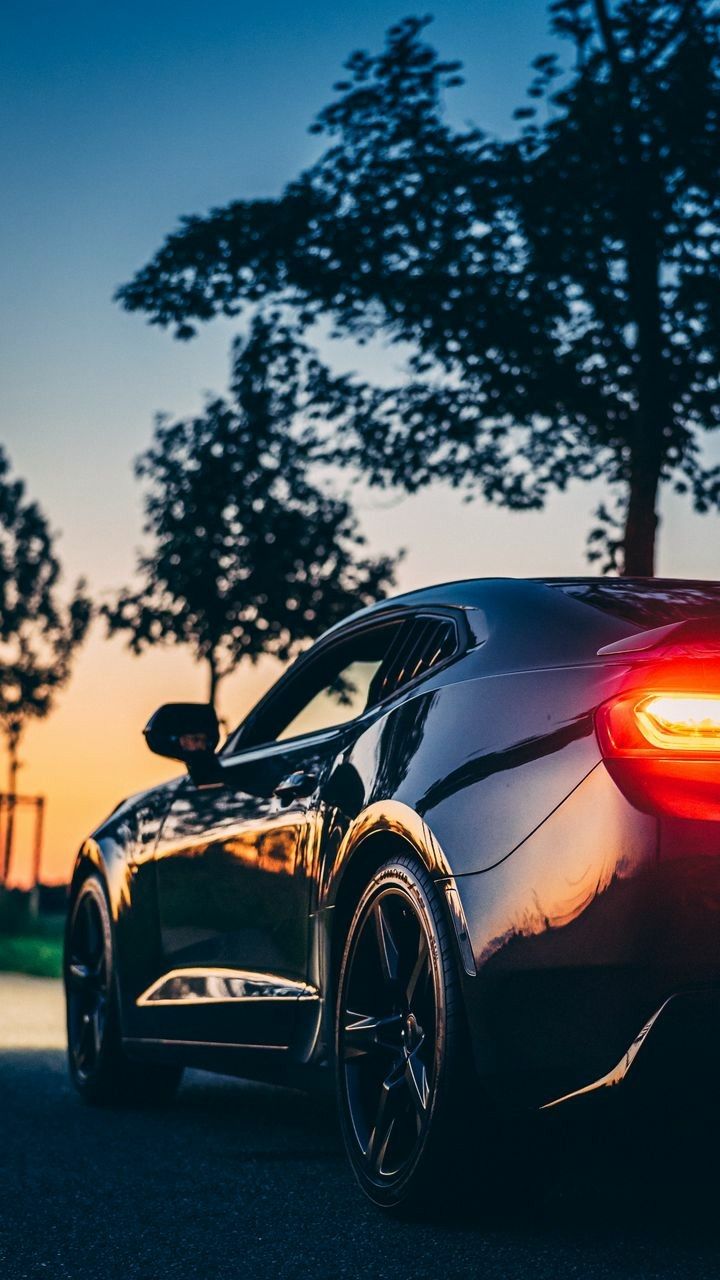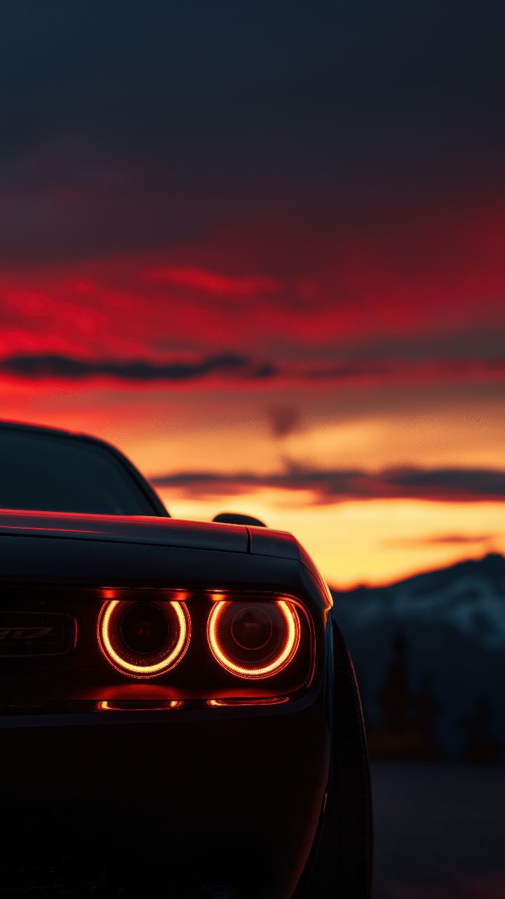 Автомобиль на фоне закатного неба создает атмосферу романтики и свободы. Теплые оттенки заходящего солнца подчеркивают силуэт машины, превращая каждый кадр в произведение искусства. Скачайте вертикальные обои с автомобилем в закате и установите на свой смартфон.