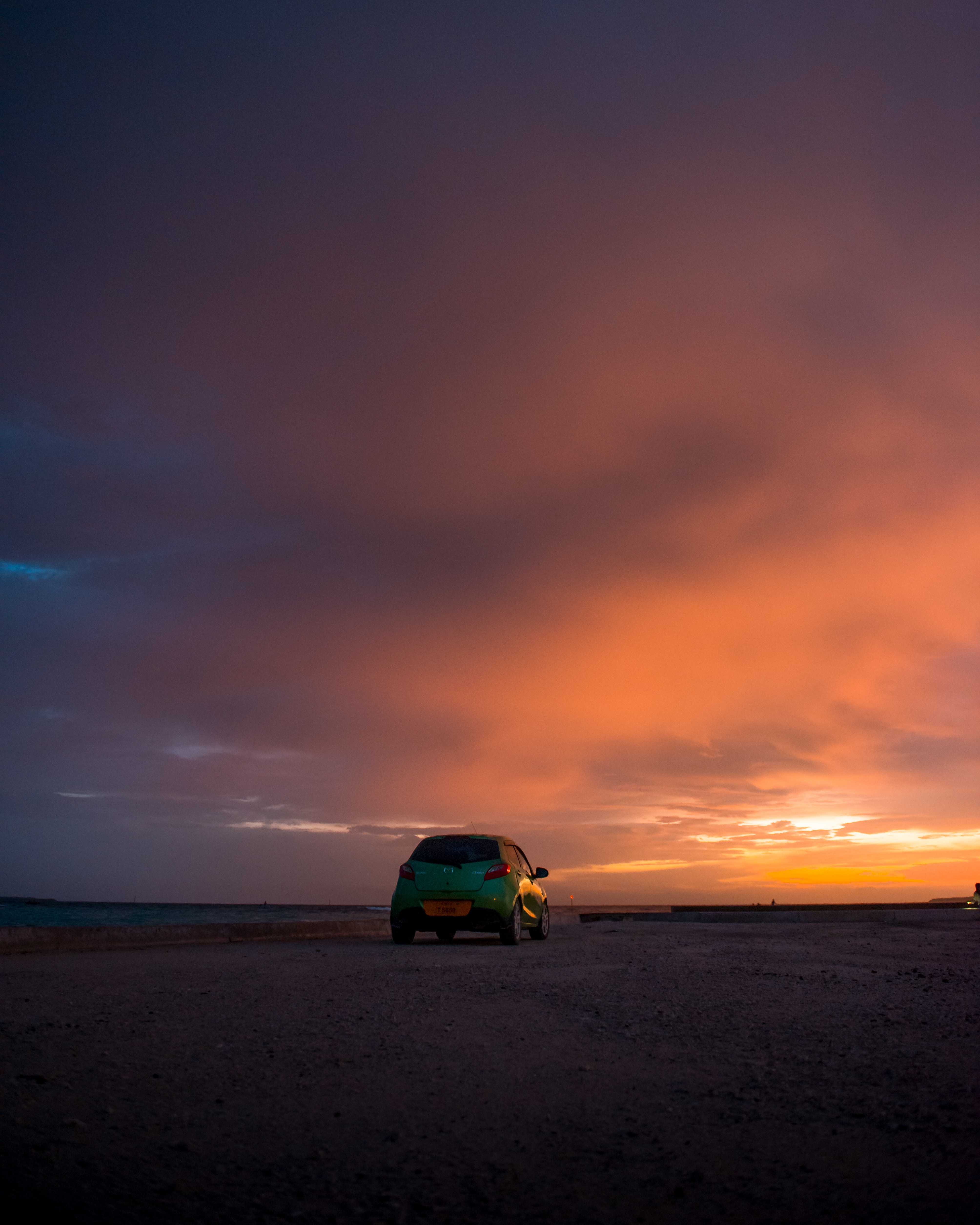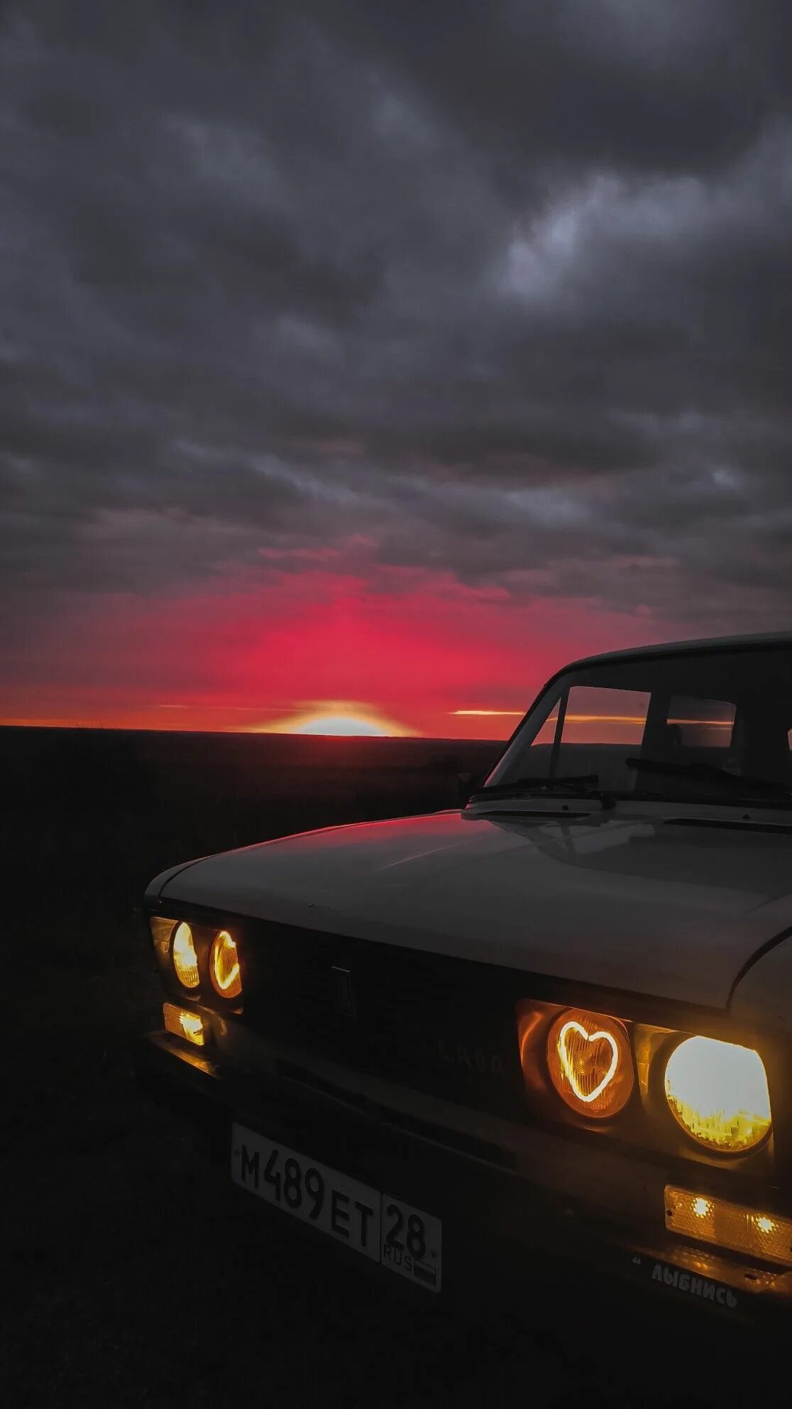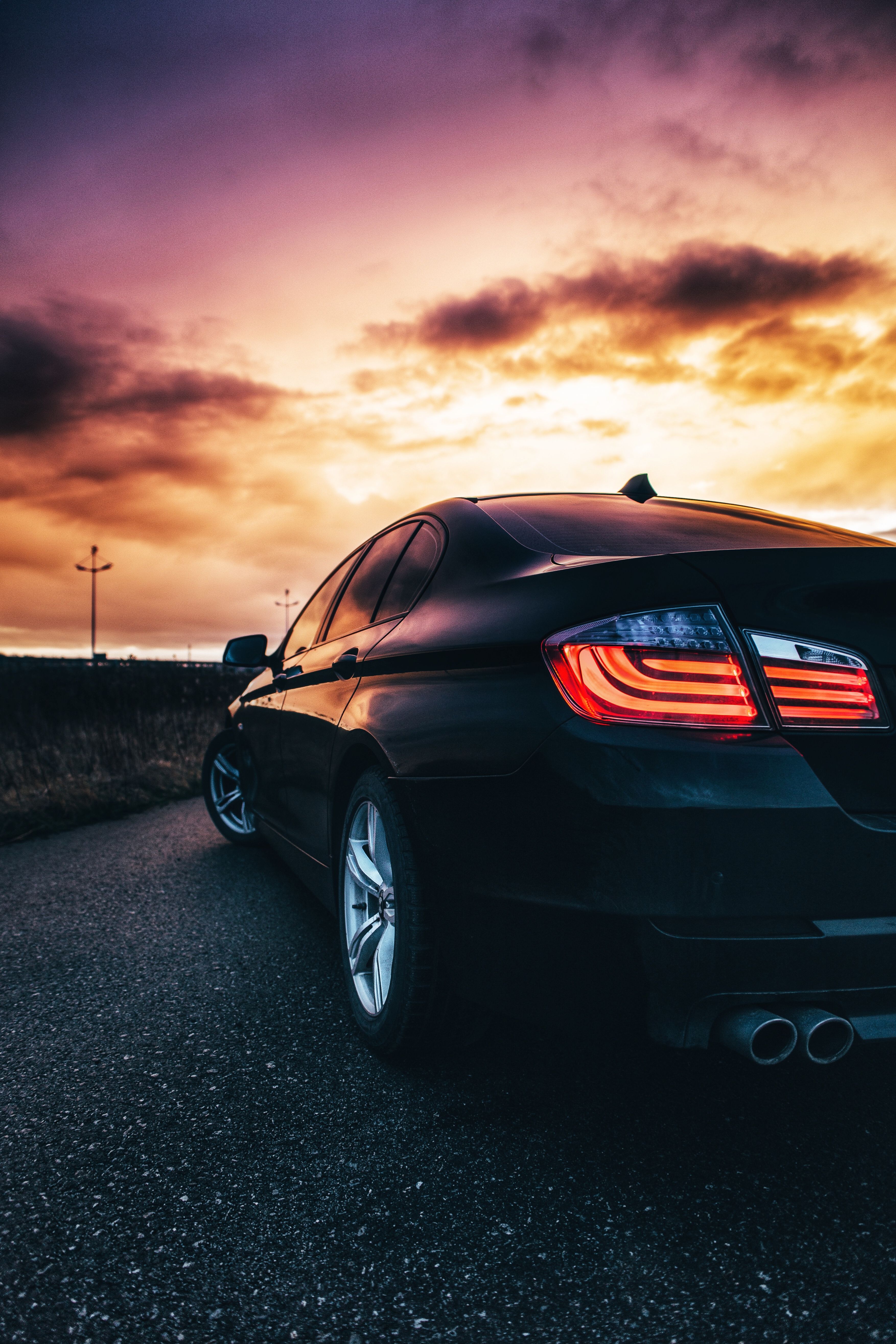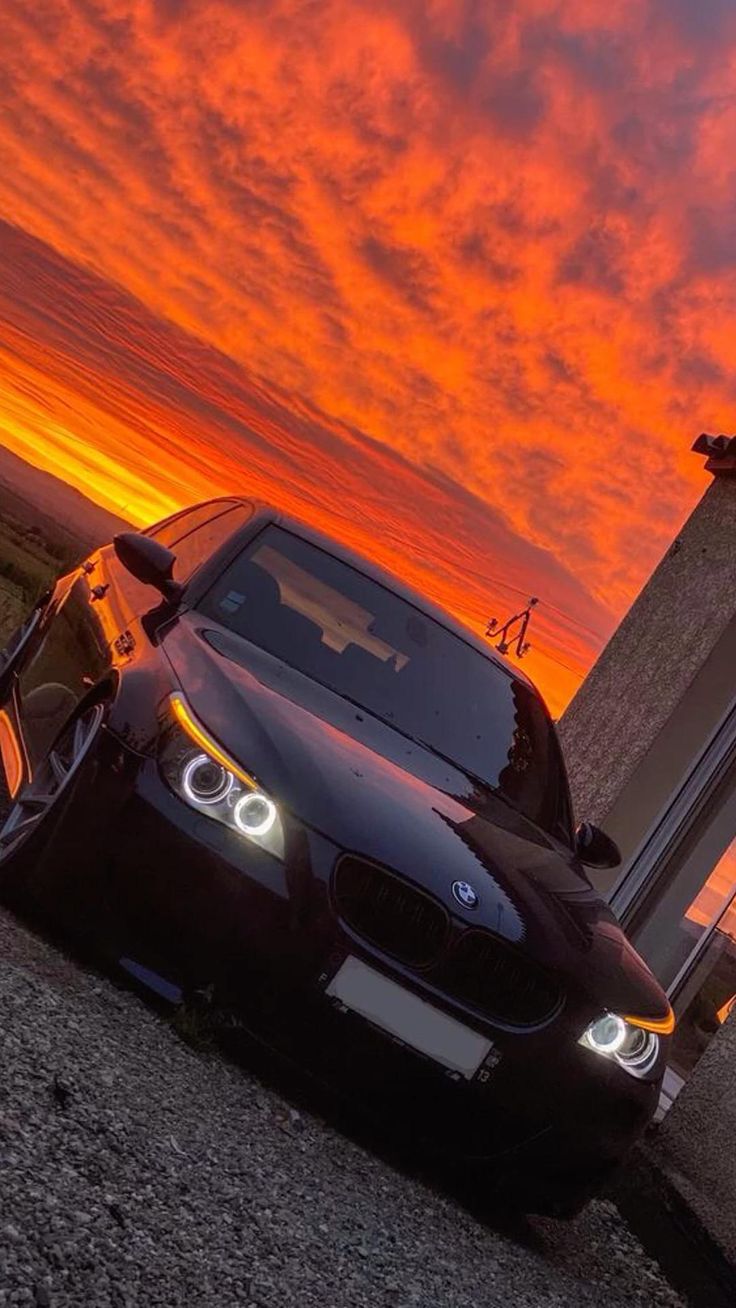 Автомобиль на фоне закатного неба создает атмосферу романтики и свободы. Теплые оттенки заходящего солнца подчеркивают силуэт машины, превращая каждый кадр в произведение искусства. Скачайте вертикальные обои с автомобилем в закате и установите на свой смартфон.