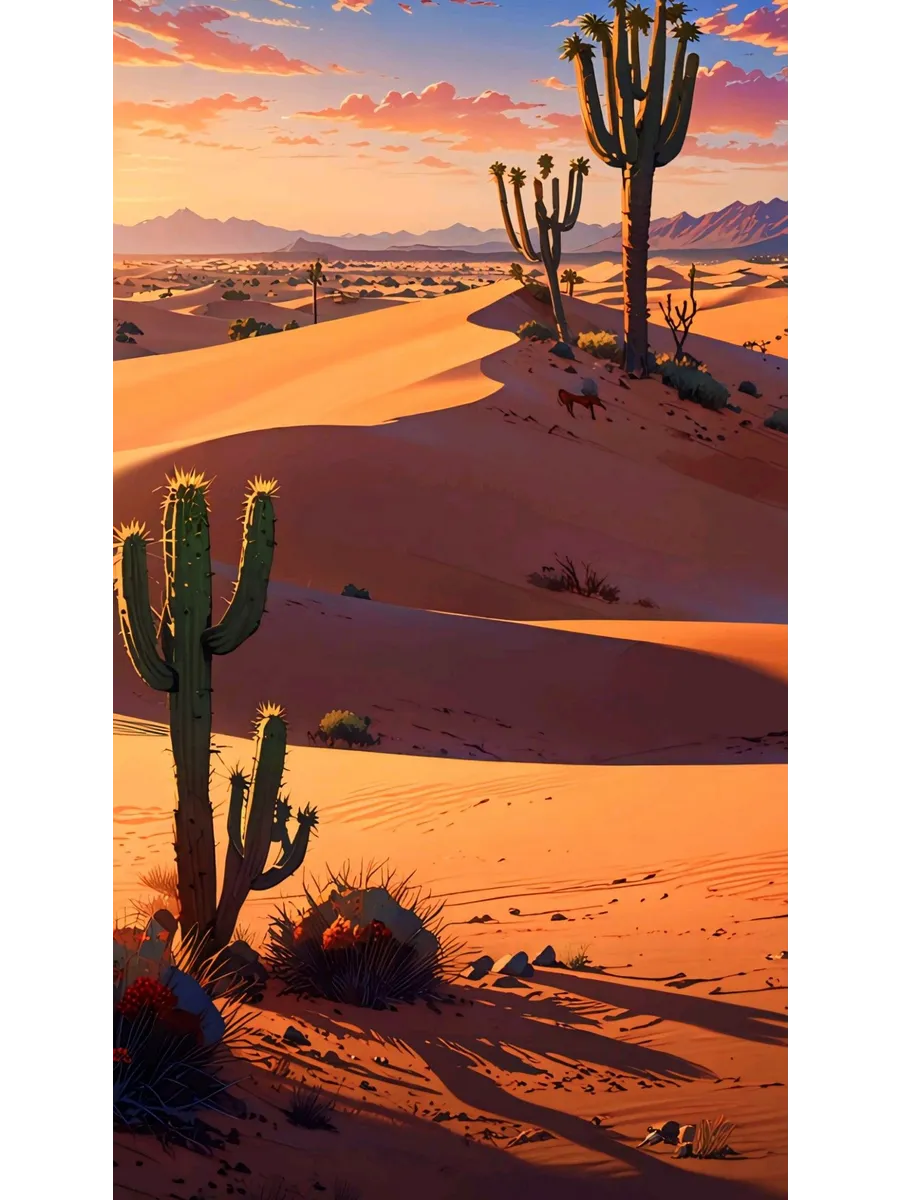 Пустынные пейзажи завораживают бескрайними просторами и золотыми барханами, которые переливаются под лучами солнца. Каждый кадр передает атмосферу безмятежности и величия природы, создавая ощущение бесконечности пространства. Установите себе на телефон обои с пустынными пейзажами и наслаждайтесь красотой природы каждый день.